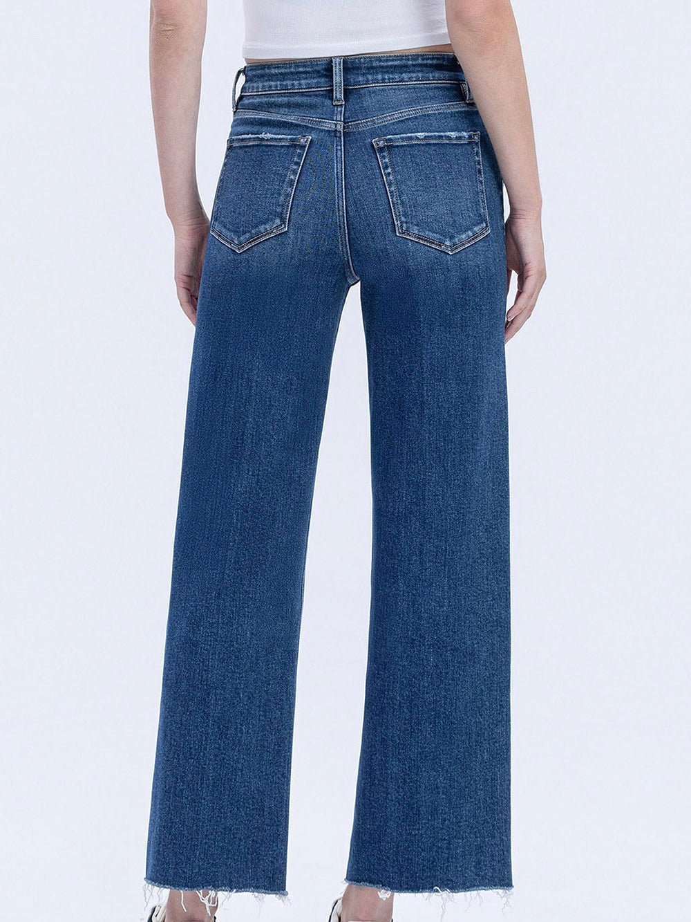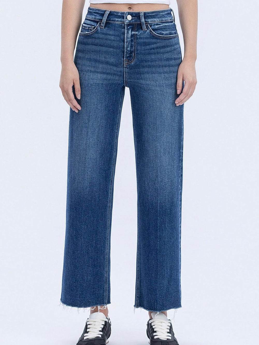 Step into effortless sophistication with the High Rise Wide with Trouser Press jeans. Tailored with a classic trouser press and a flattering front rise, they offer a polished silhouette from day to night. The cotton blend provides just the right amount of stretch, while the wide leg and inseam create a modern, flowy fit that moves with you. Perfect for pairing with sleek heels or casual sneakers.