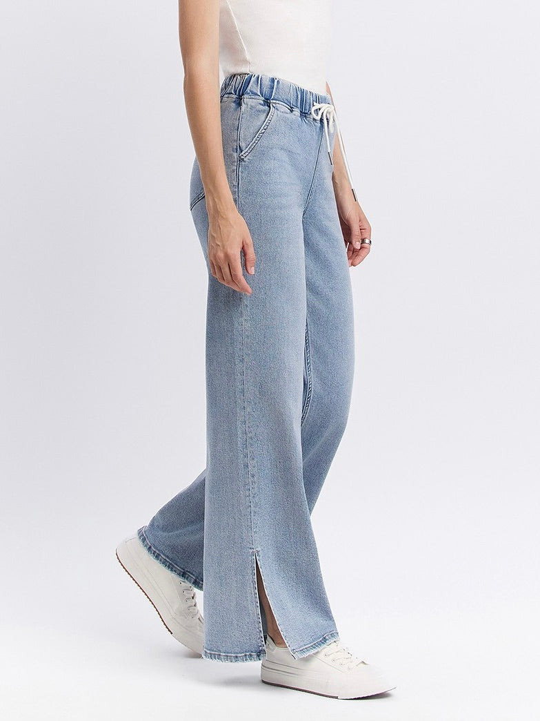Lovervet : High Rise Drawstring Side Slit Wide Leg