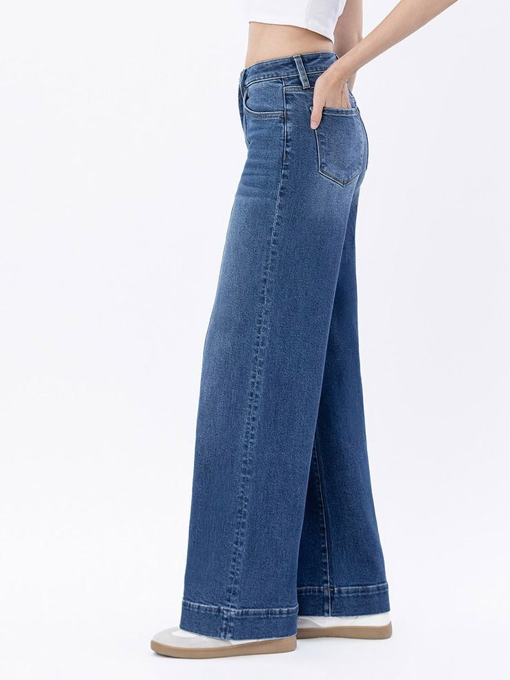 Bold and flattering, these High-Rise Extreme Wide Trouser Jeans make a statement without sacrificing comfort. Designed with comfort stretch, they feature a super high waist and an ultra-wide leg that creates a long, dramatic silhouette. Pair them with a fitted top or cropped sweater to let the shape shine.