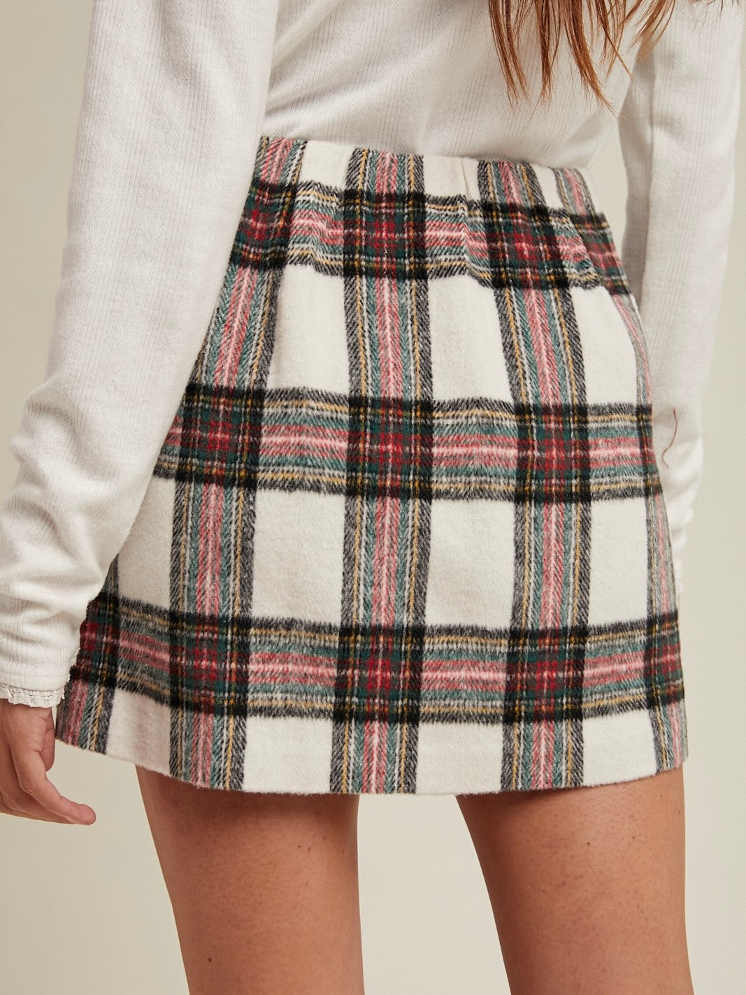 The Lauren Plaid Mini Skirt is a playful nod to classic prep style. Its clean lines and flattering fit make it easy to dress up or down. Perfect for pairing with sweaters, tees, or your favorite boots for any occasion.