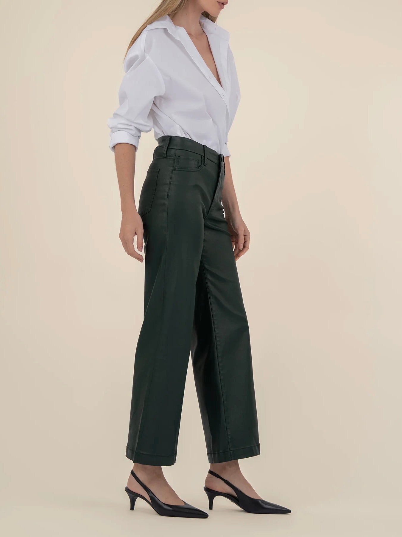 Step up your game with the Meg High-Rise Fab Ab Wide Leg Wide Hem. Their coated finish and ankle-grazing hem give a modern, edgy vibe, while the Fab Ab front pockets shape and smooth for a flattering fit. With a wide-leg silhouette and raw details, they’re equal parts cool and effortless.