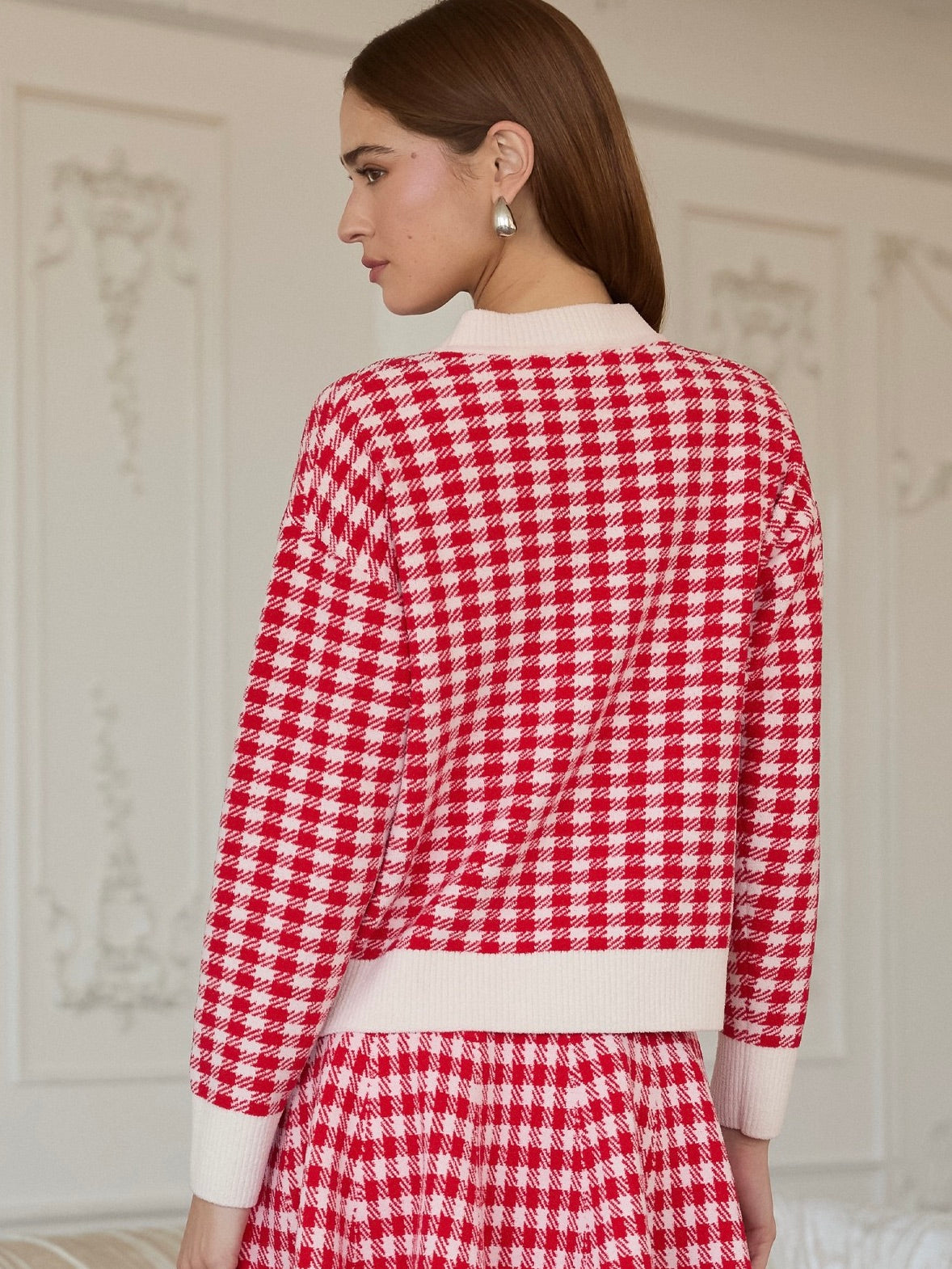 Checkered Pattern Knit Cardigan – Vintage Charm