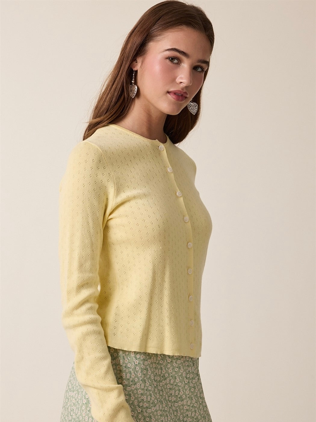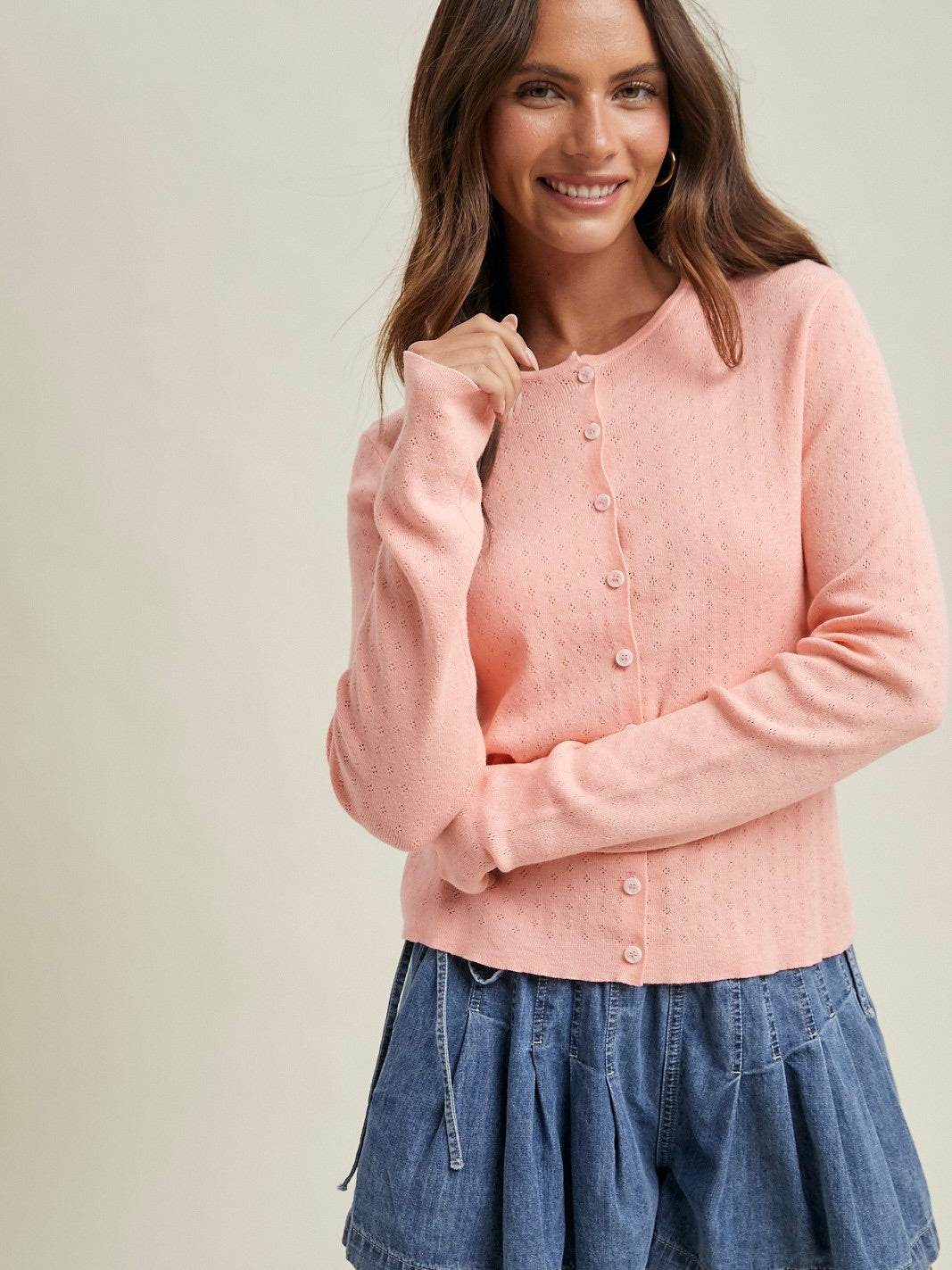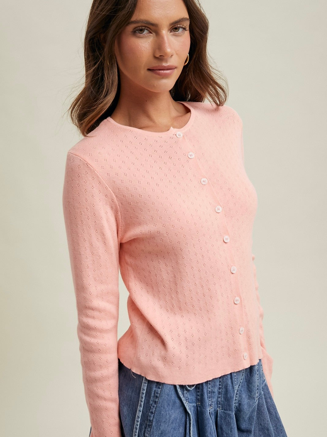 Pointelle Button Up Cardigan