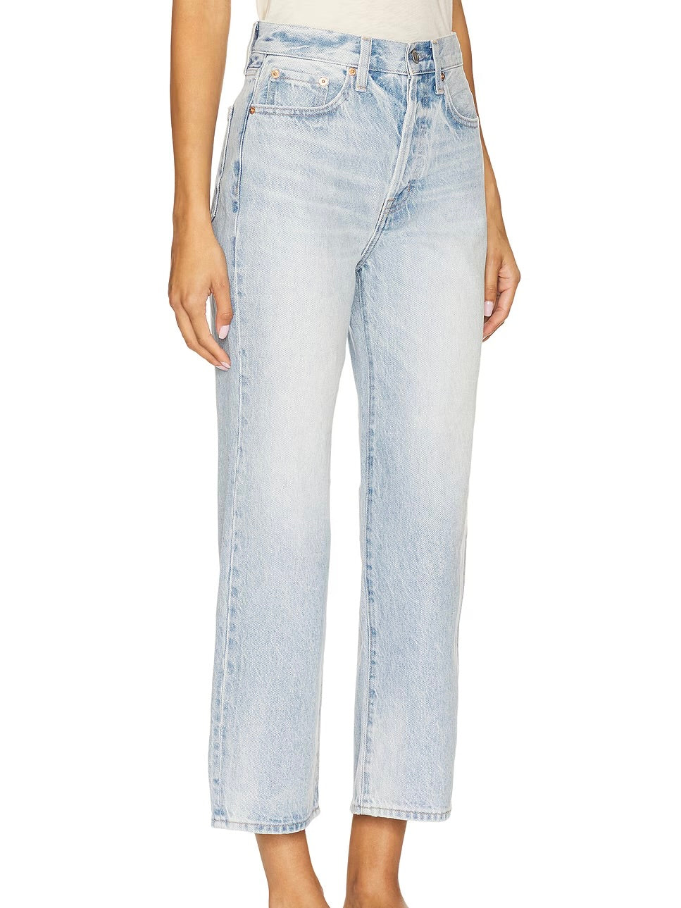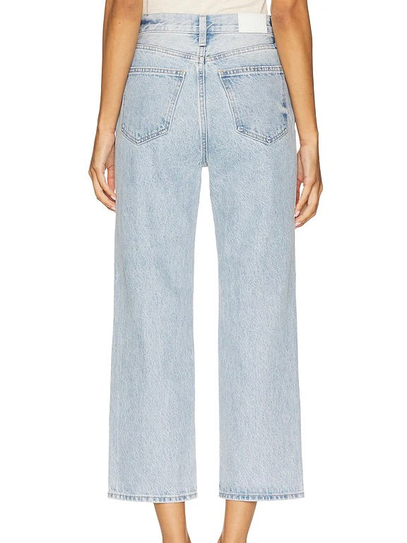 The crop that commands attention. Cassie Crop sits confidently at a super high rise, defining your waist with architectural precision. The composed straight leg creates an elongated silhouette before hitting at the perfect cropped length, finished with a 26" inseam. Crafted from rigid non-stretch denim in Radiant, a light wash.