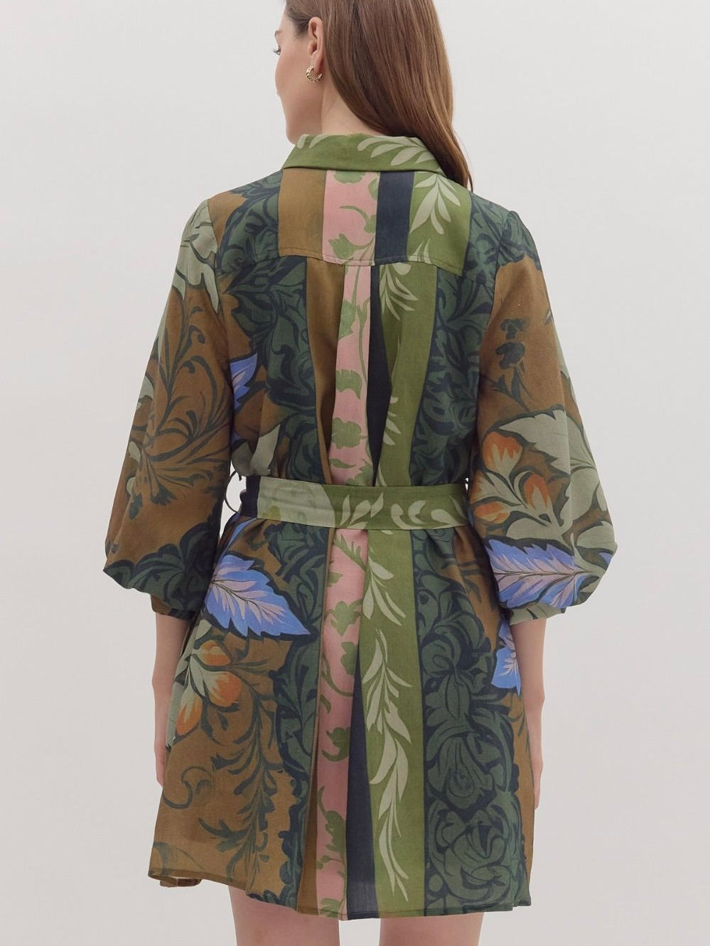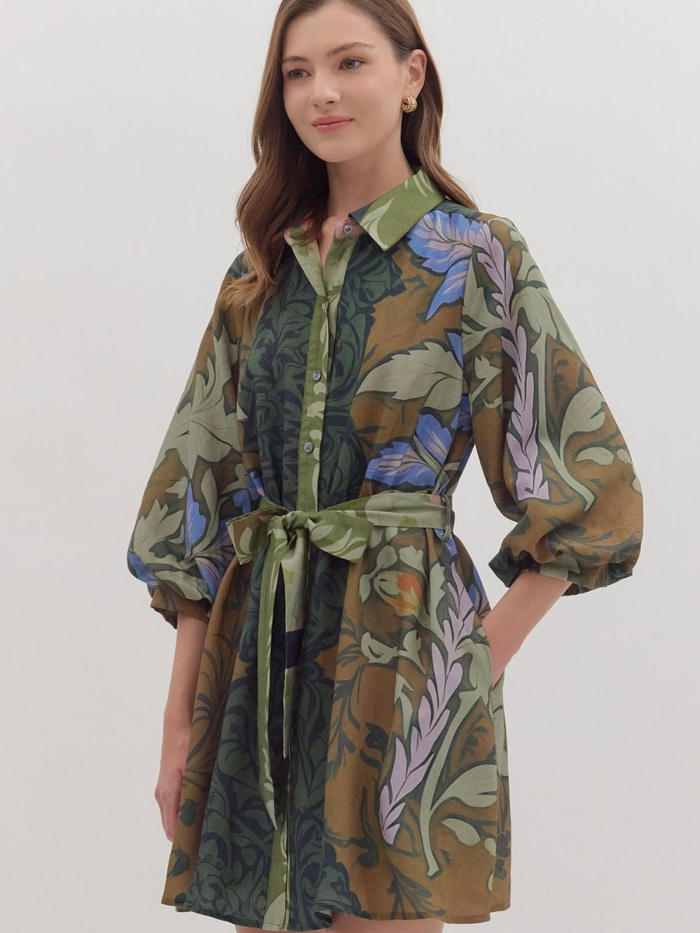 The Bambie Botanical Dress is effortlessly chic with a playful touch. A collared button-down front and self-tie belt give it a flattering silhouette, while long sleeves and a breezy cut make it perfect for day-to-night wear. Pair with sandals or boots for an easy, polished look.