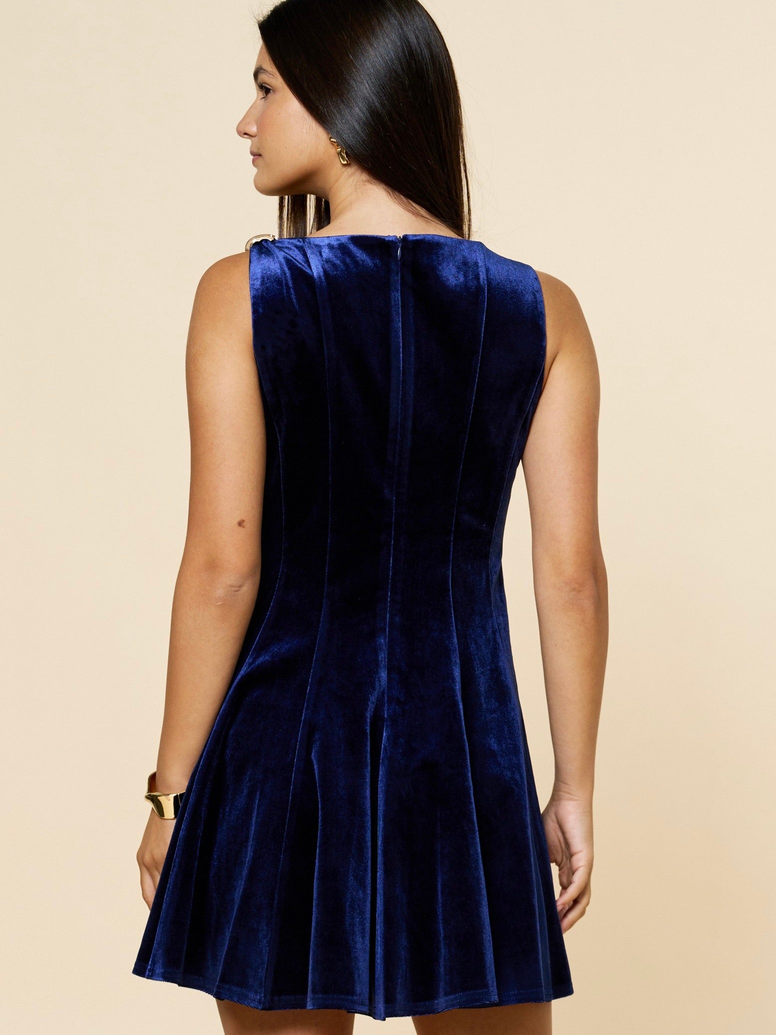 Luxe and romantic, the Angie Mini Dress features a graceful boat neckline and a soft flare silhouette that moves beautifully with every step. The plush velvet texture adds depth and richness, while the classic cut keeps it effortlessly chic. Perfect for holiday gatherings or date nights, it's an elevated piece with timeless appeal.