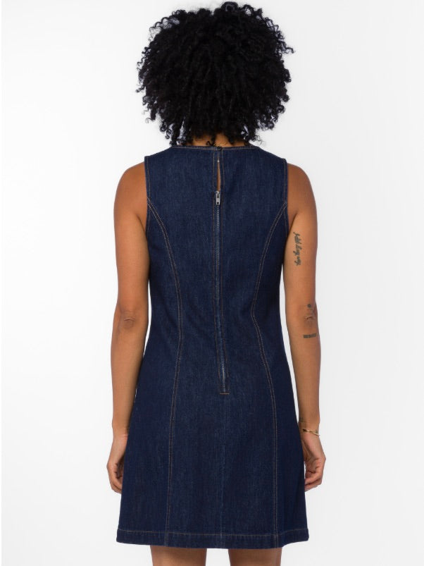 The Matilda Dress is a fresh, everyday denim staple. The perfect balance of structure and softness. Its round neckline and sleeveless design keep the look clean and easy, while the front pockets add casual charm and functionality. It’s the ideal piece for weekend errands or effortlessly cute styling. A true denim go-to you’ll reach for again and again.