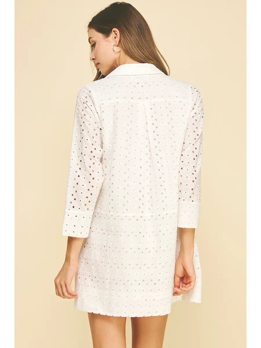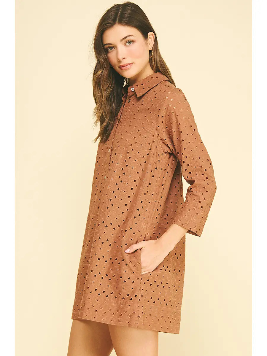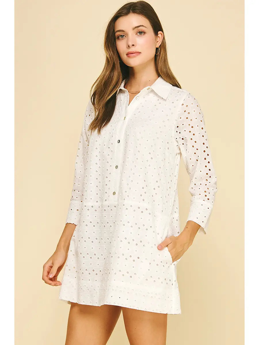 The Pampalone Dress is an easy favorite for warm, sunny days. Delicate eyelet details add charm, while side pockets keep it effortlessly practical. Finished at an above-the-knee length, this dress is perfect for everything from casual outings to weekend getaways.