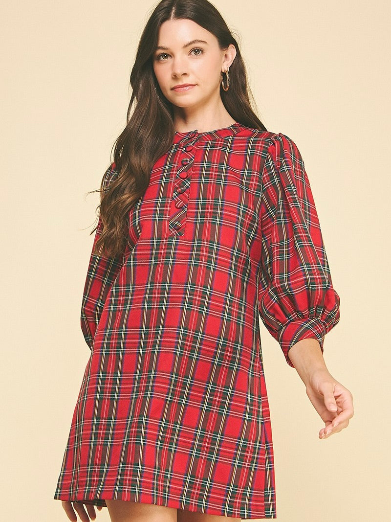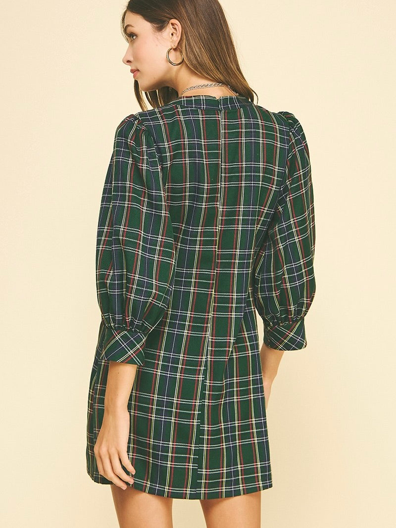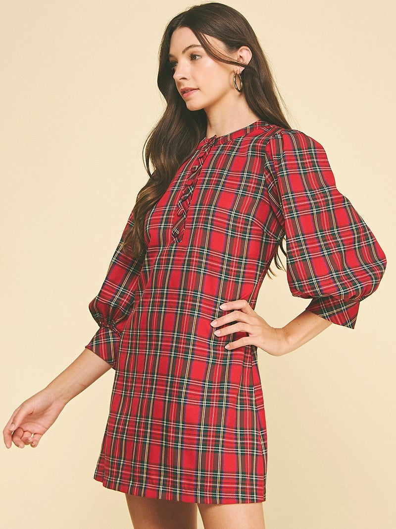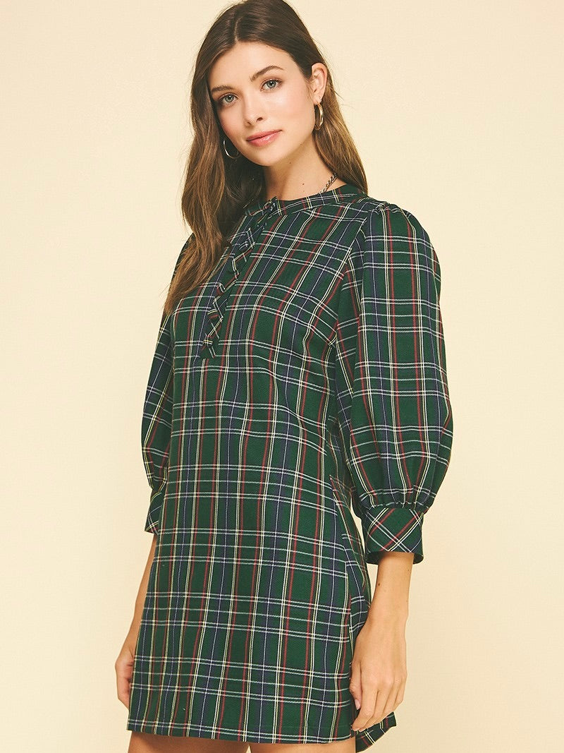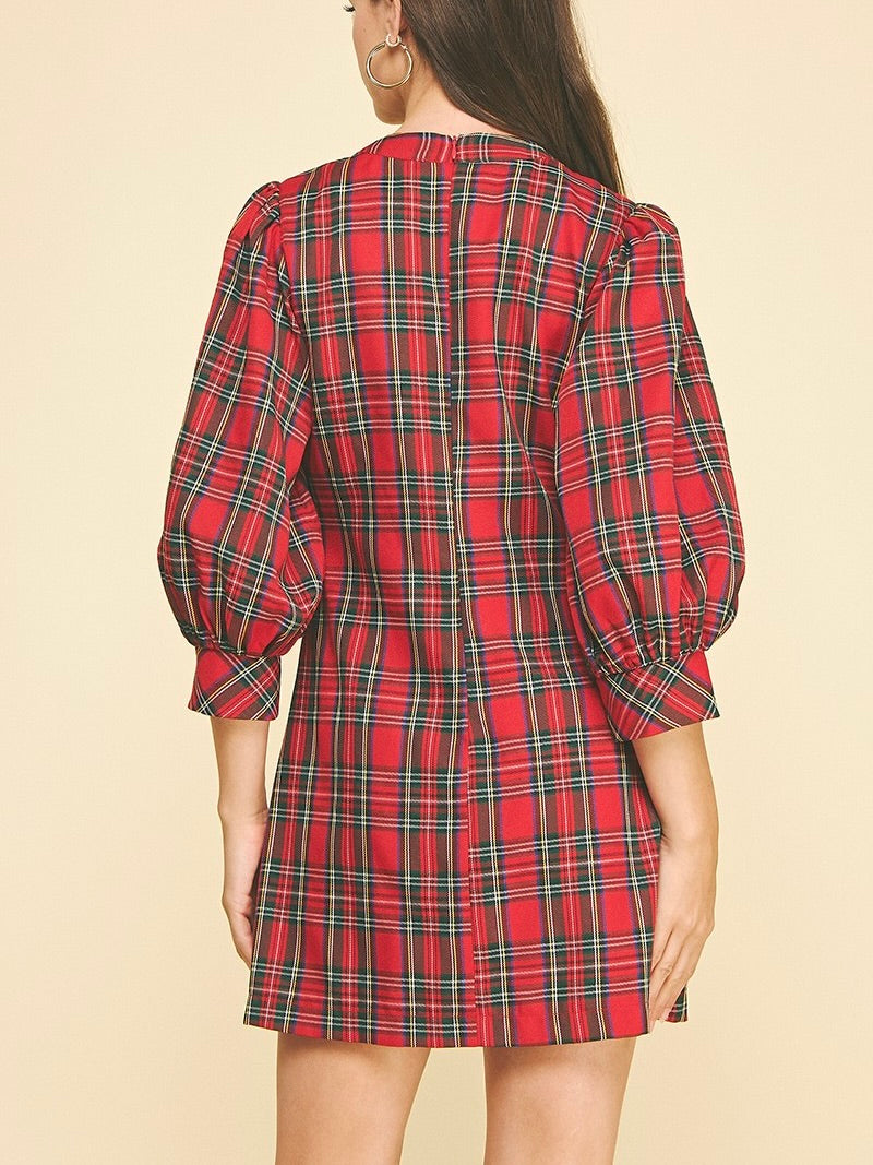 The Plaid Button-Down Mini Dress is playful, flirty, and effortlessly chic. Button-front detail and puff sleeves add a touch of charm, while the above-the-knee length keeps it fun and flirty. Perfect for brunch, casual outings, or layering with boots for a polished look
