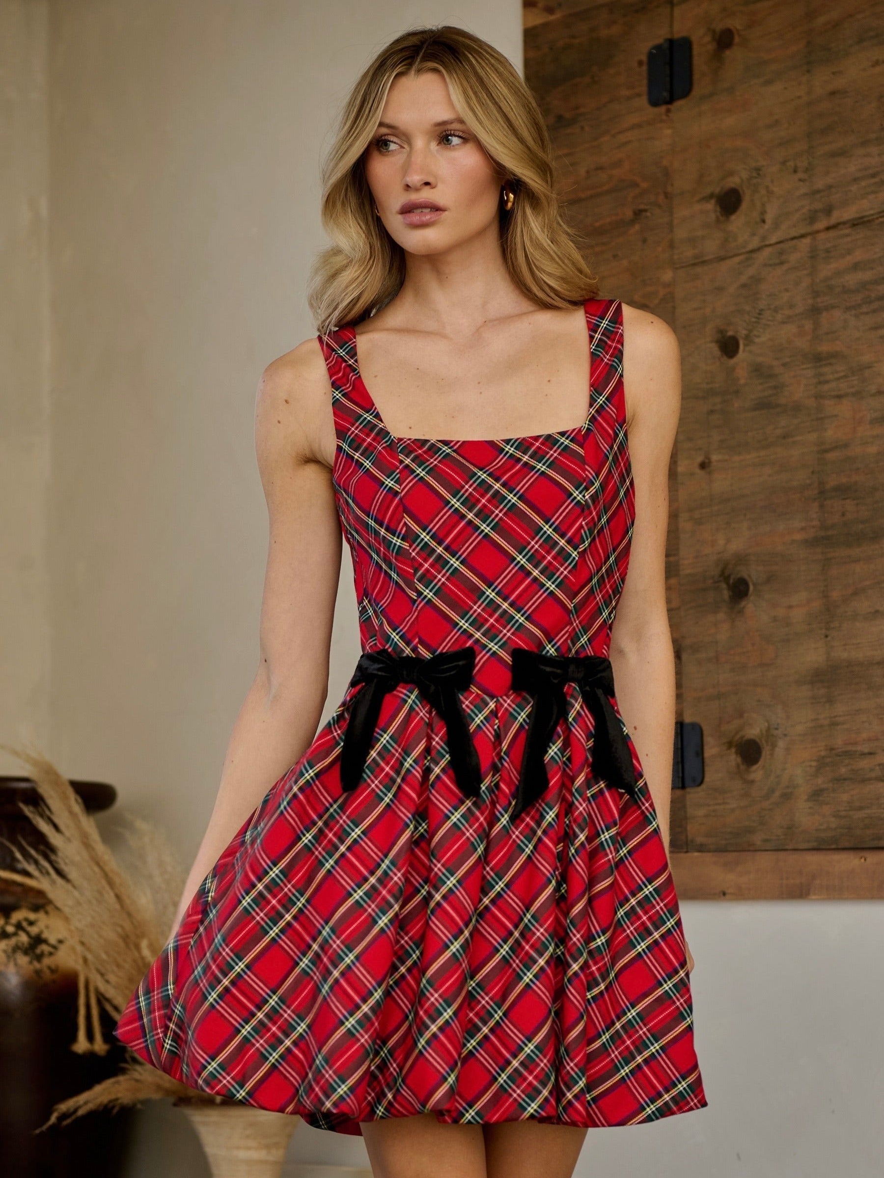 The Sellora Plaid Boxie Bow Mini Dress is flirty, fun, and effortlessly stylish. Its square neckline and bow detail add a playful touch, while the boxy fit keeps it easy to wear. Perfect for pairing with boots or heels for a polished, standout look.