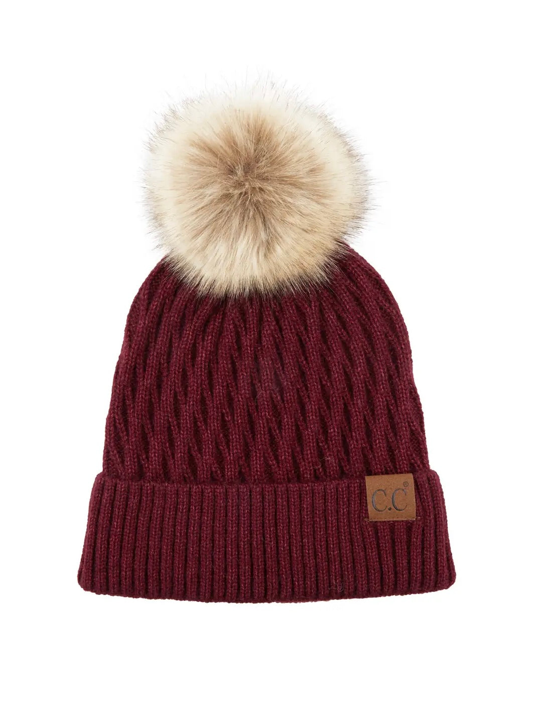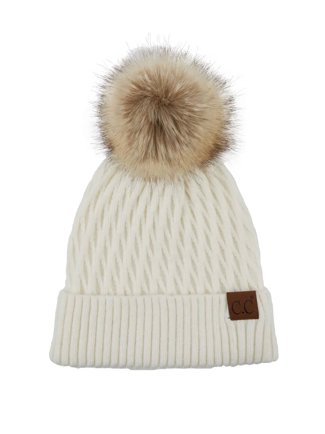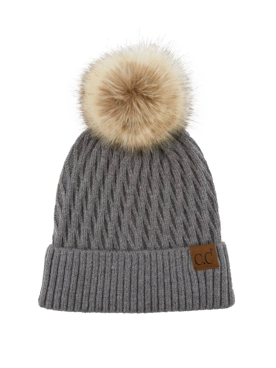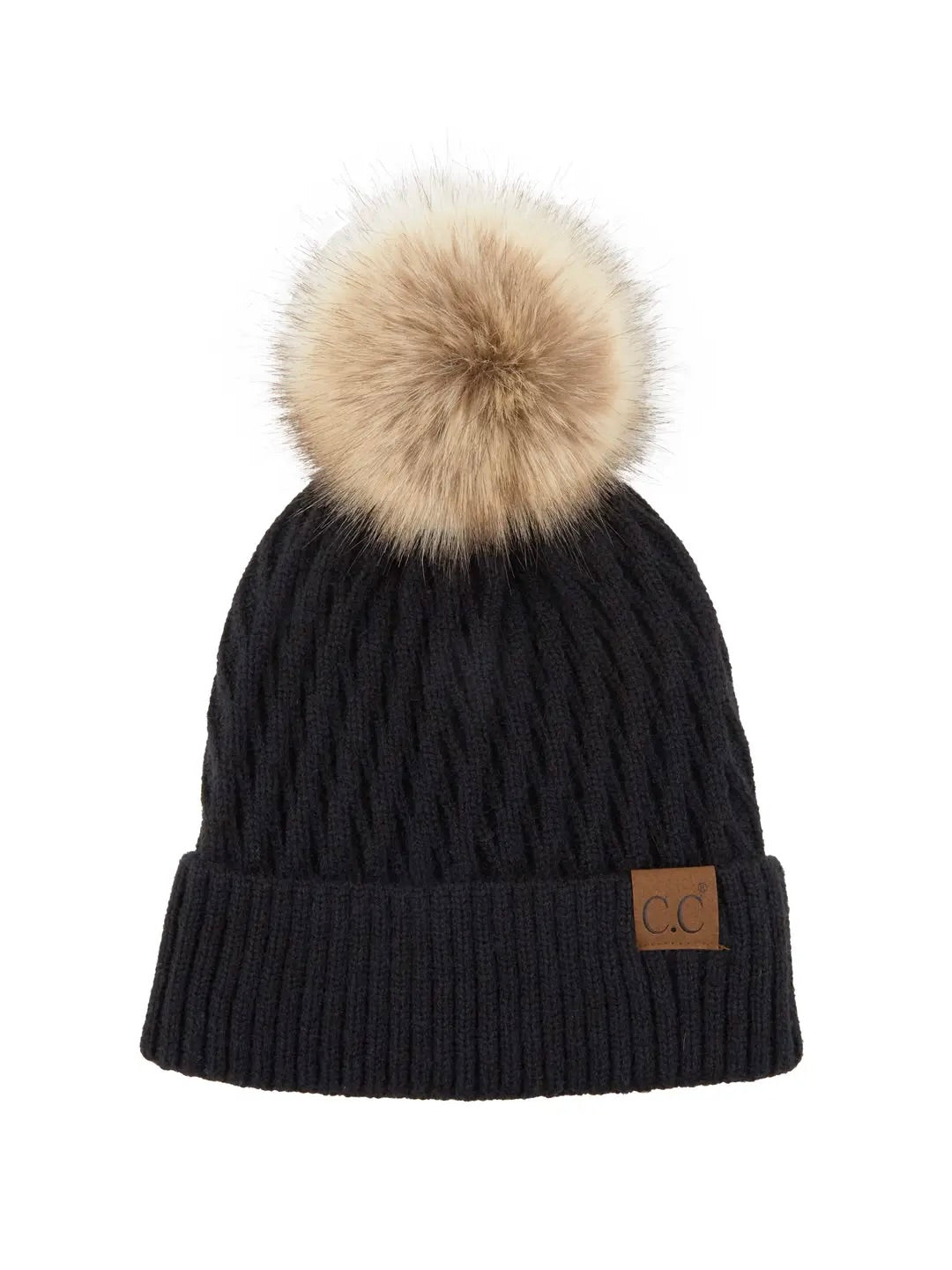 Wrap yourself in cozy warmth with our Knit Faux Fur Pom Pom Beanie Hat. Made with a knit design and a faux fur pom pom, this hat will keep you warm and stylish all winter long. Perfect for any outdoor adventure or just a stroll around town.