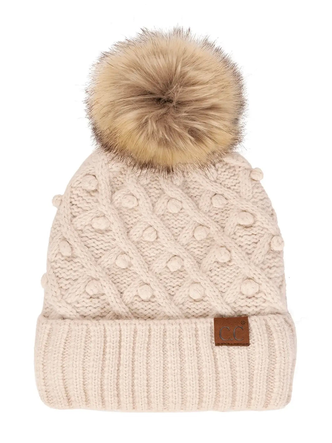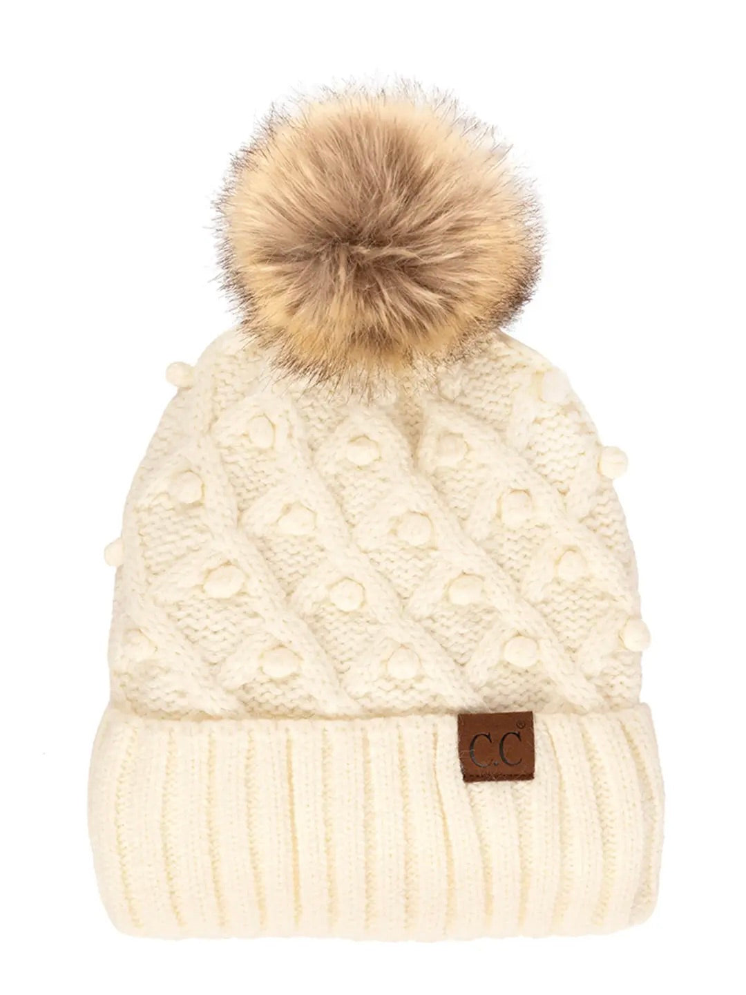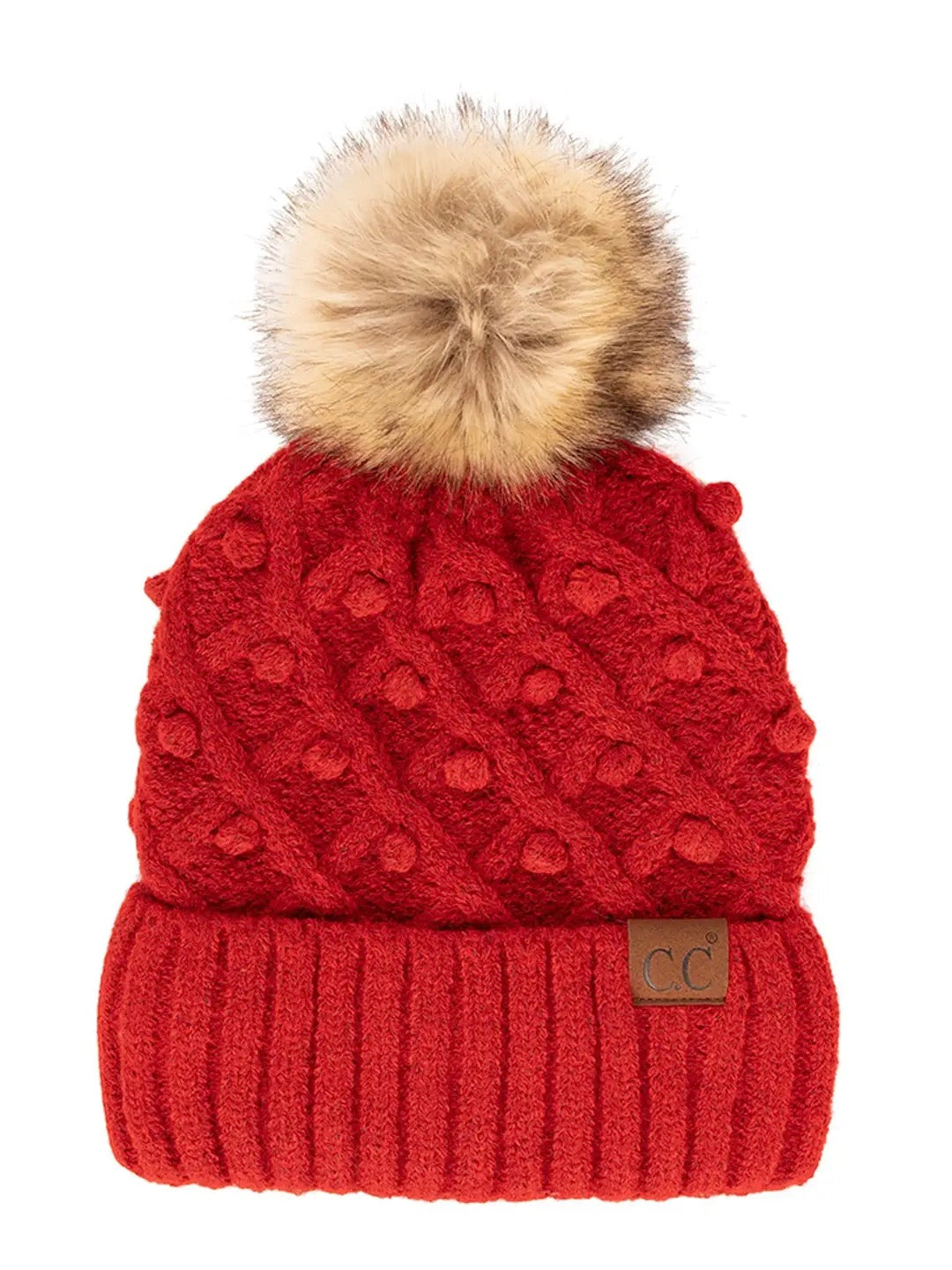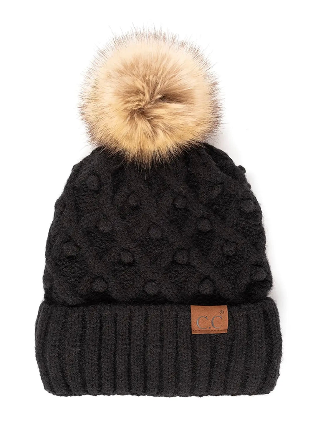 These adorable accented beanies have hand crochet mini pom-poms accenting them. They are the perfect hand-crafted item. They come with CC's quality. Made with their finest super soft acrylic.