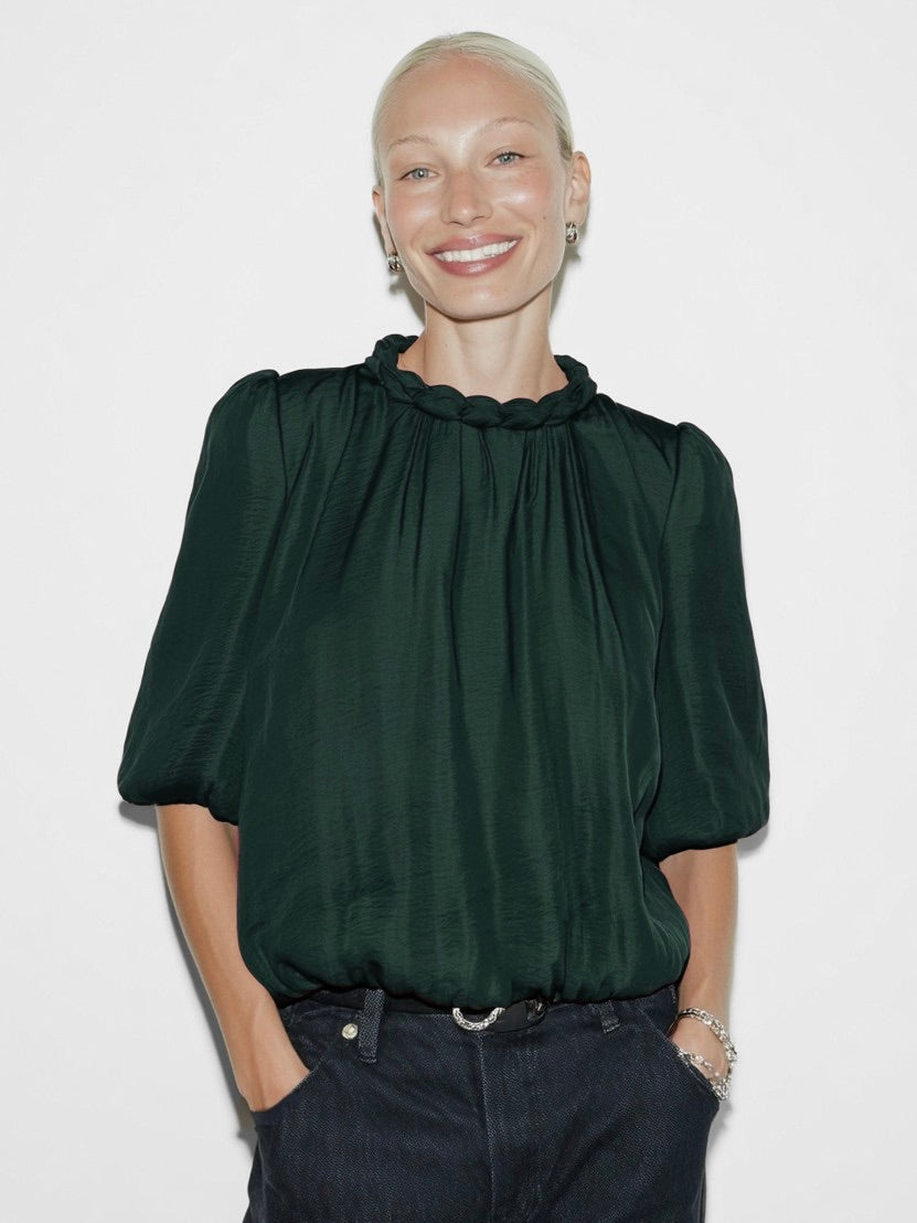 The Christi Top is all about playful polish! Featuring a braided neckline and soft bubble hem, it adds a touch of texture and charm to your look. With its easy half sleeves and keyhole back, it’s the perfect mix of dressy and fun.