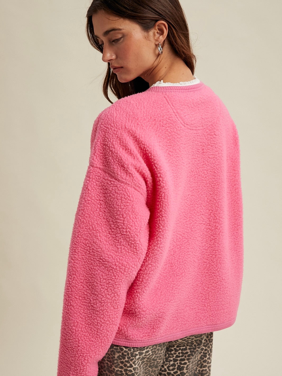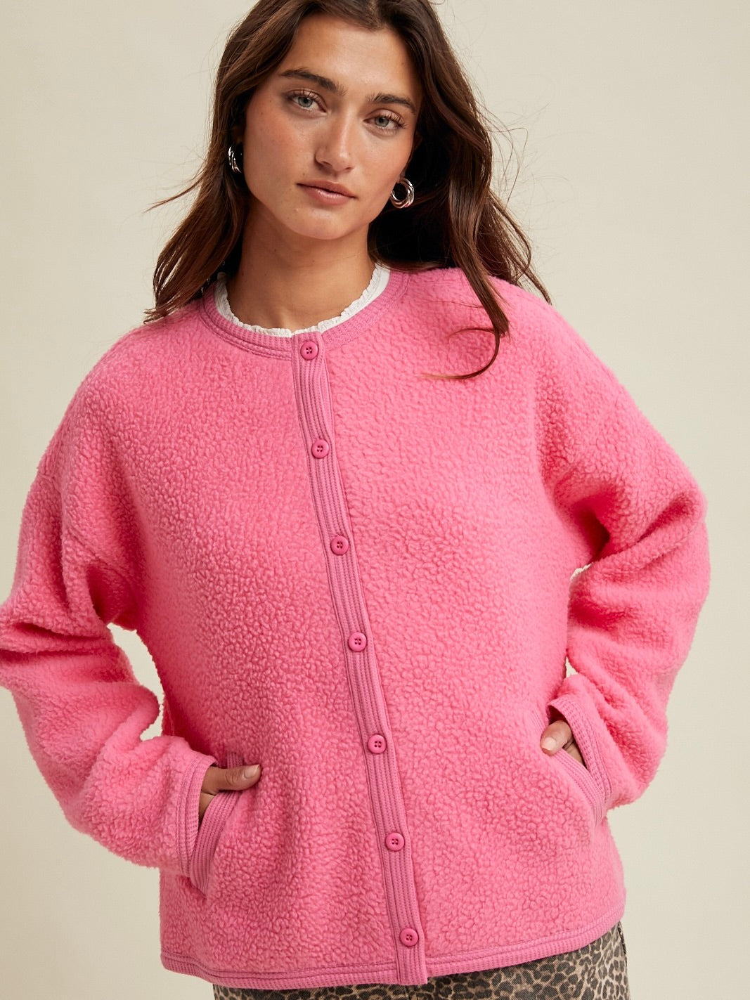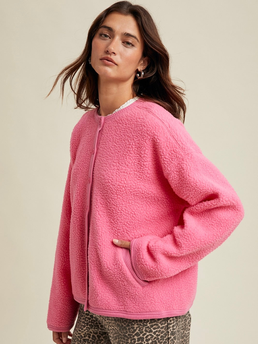 The Anya Sherpa Jacket is your go-to for instant warmth and style. Wrapped in plush softness, it’s made for chilly days when you want to stay cozy without sacrificing a polished look. A cold-weather essential you’ll never want to take off.