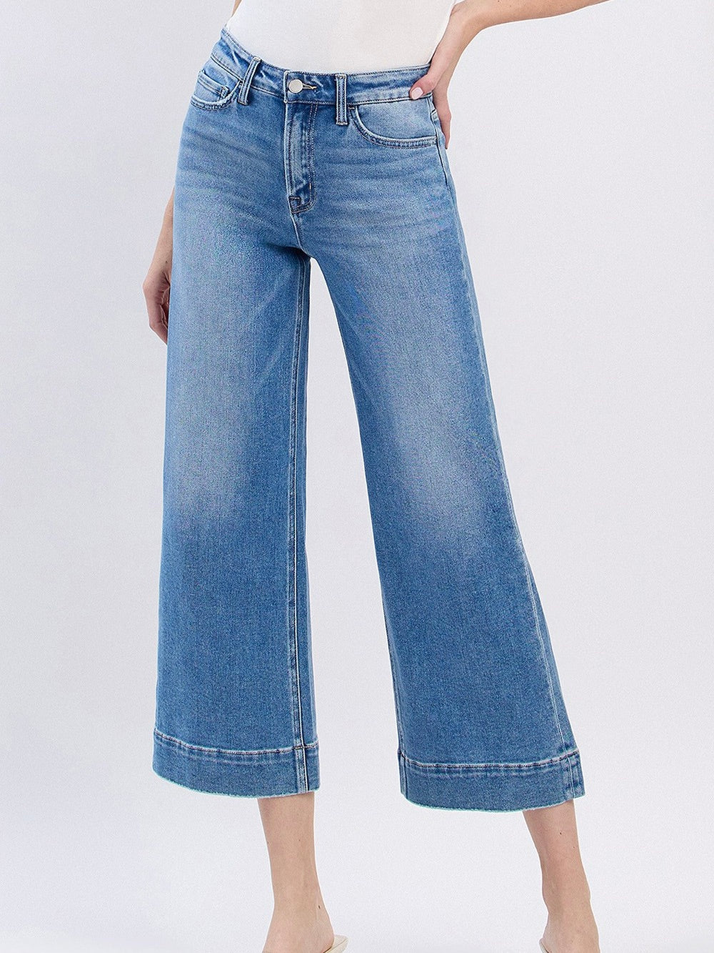 Meet your new go to - High Rise Crop Wide denim. These cotton-blend pants offer a flattering, relaxed fit that hits just above the ankle. The slight stretch keeps them comfy for all-day wear, while the cropped length makes them perfect for showing off your favorite shoes.