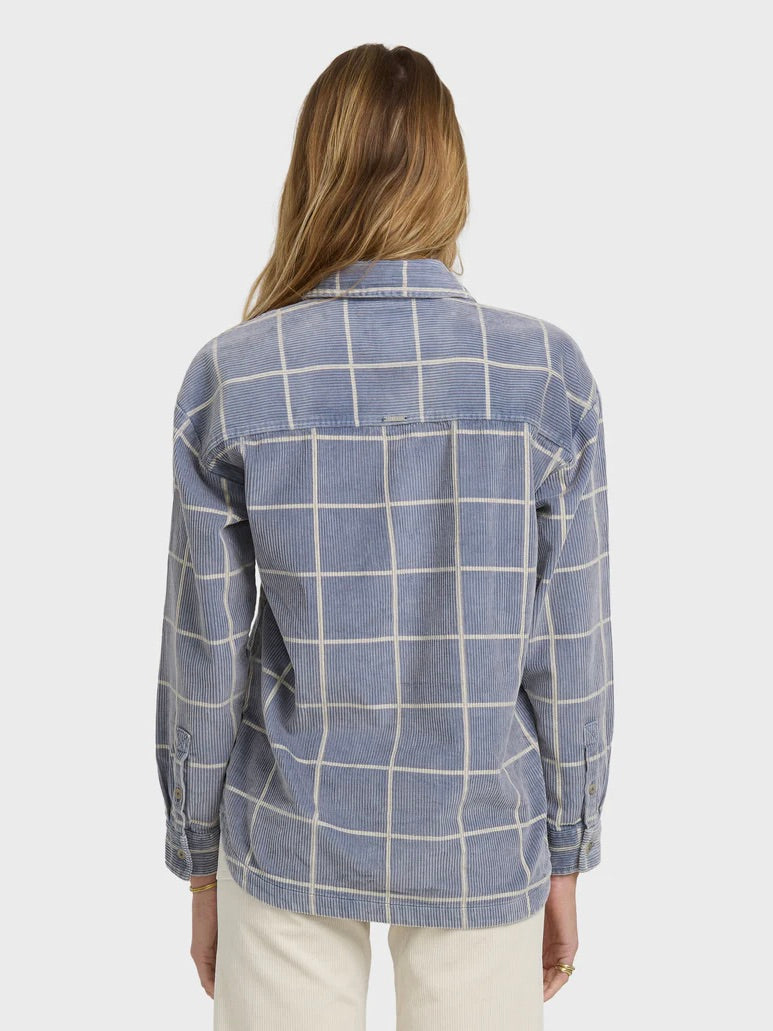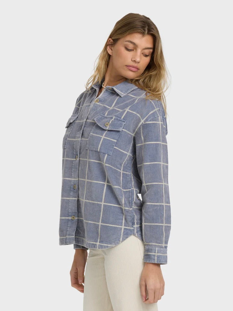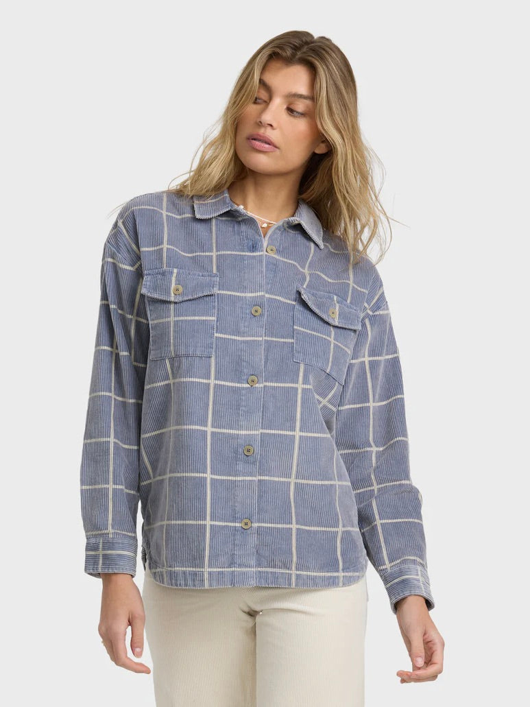 Breakfast ran long. The Fadeaway Long Sleeve Shacket kept us comfy and polished. Oversized corduroy layers easily, button down closure adjusts airflow, front patch pockets stash essentials, and a subtle metal plate flashes just enough shine.