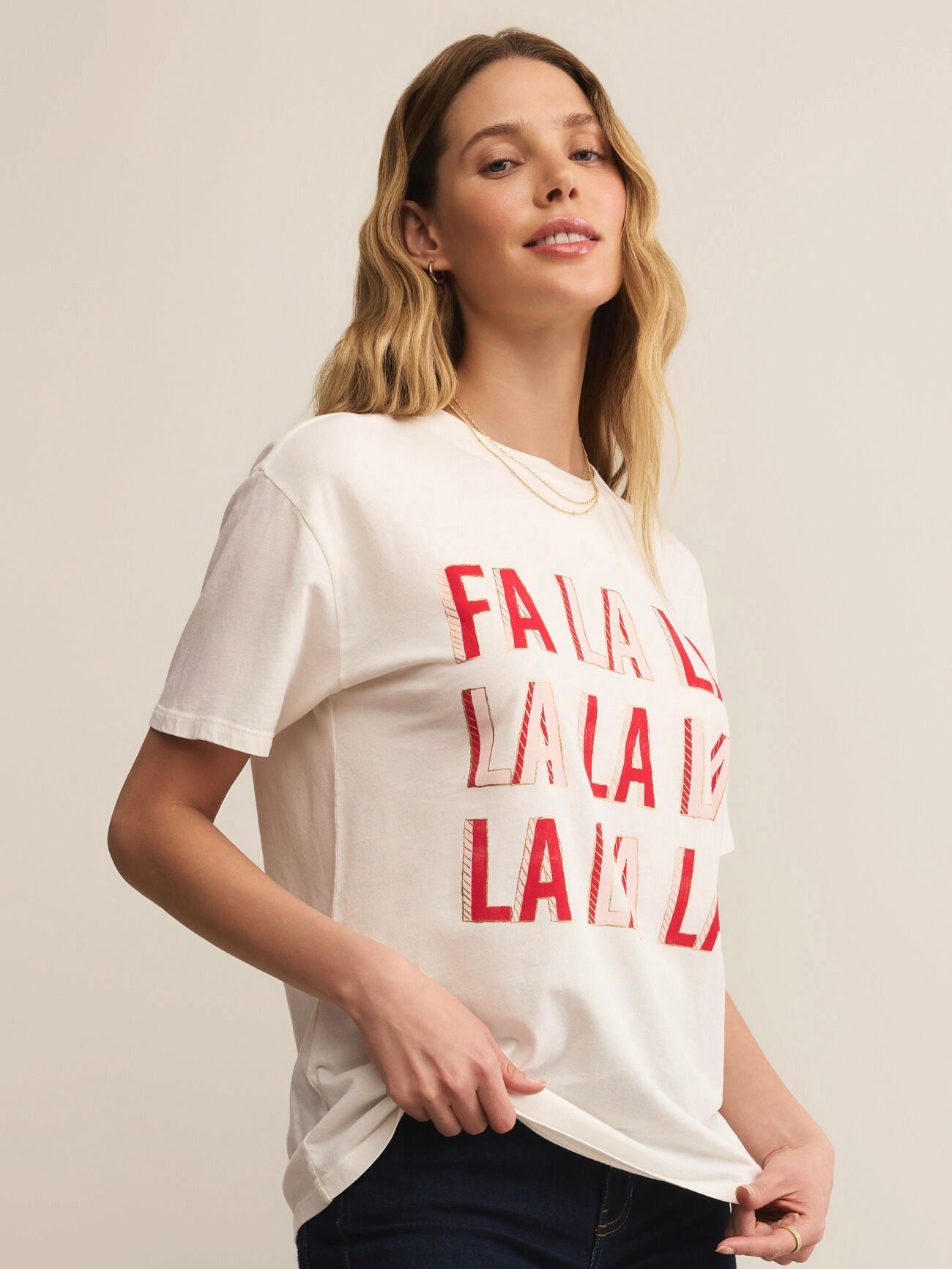 The Falalala Boyfriend Tee is cozy, casual, and full of holiday cheer. Soft cotton with a heavy soft wash gives it a lived-in feel, while the relaxed fit and classic crewneck make it perfect for everyday wear. Pair with jeans, leggings, or skirts for an effortlessly festive look.