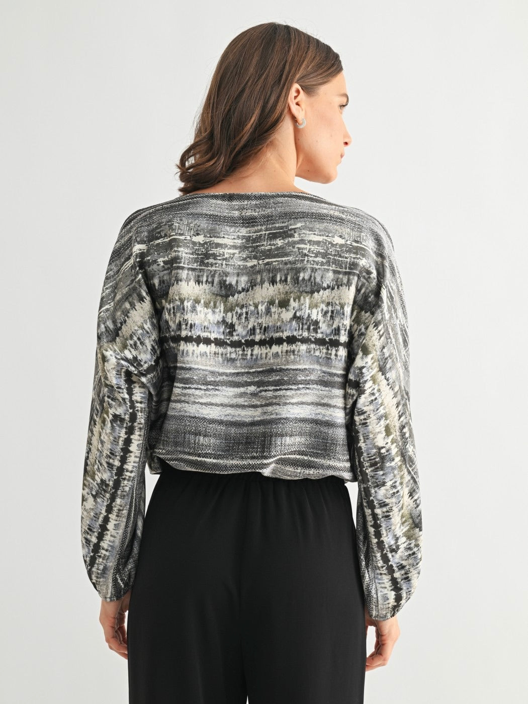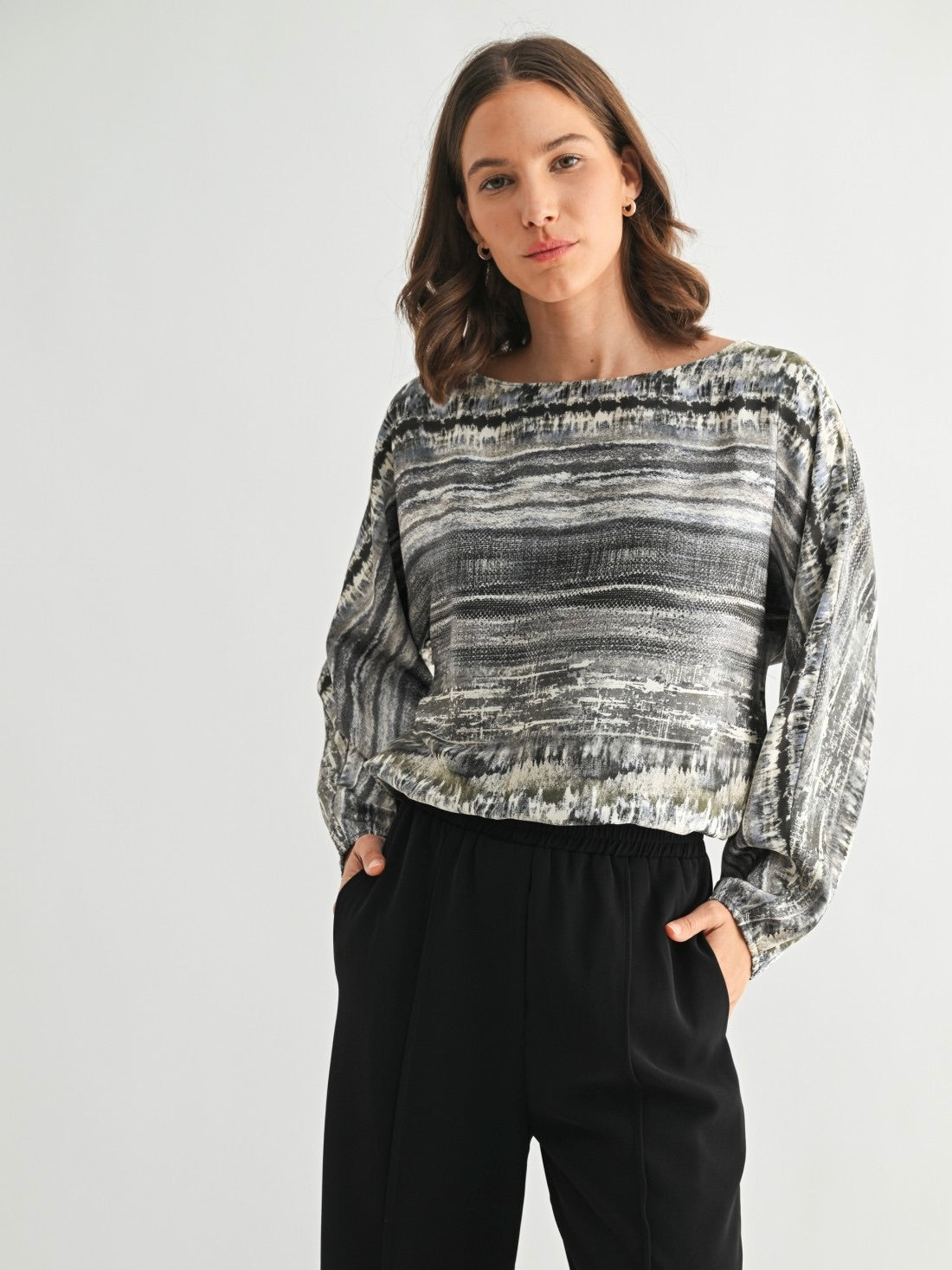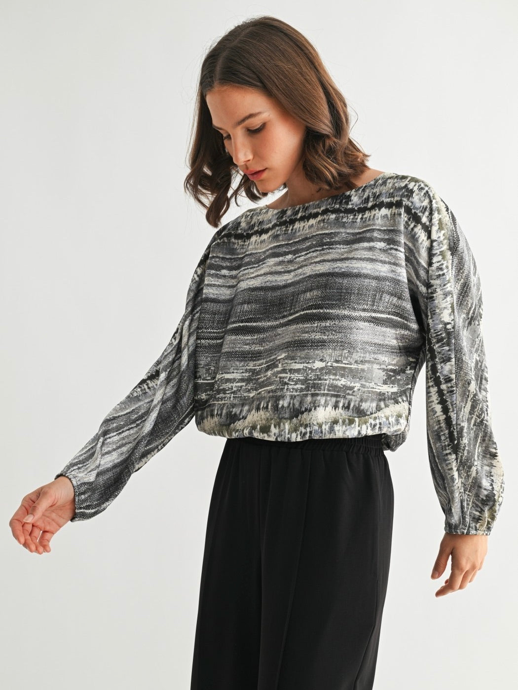 Make a statement in the Galena Top. Its abstract print and relaxed dolman sleeves create effortless movement, while the boat neckline adds a touch of sophistication—perfect for dressing up or keeping it casual.