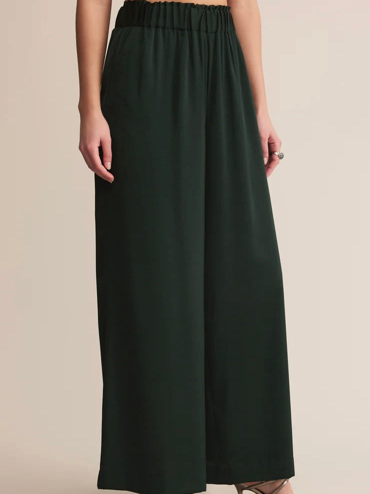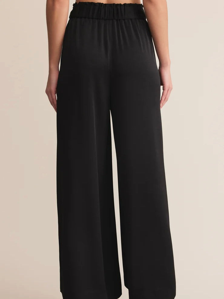 Made from a silky satin fabric with a high rise and wide leg, this pant delivers easy sophistication in a fluid, relaxed design. An elastic waist and subtle sheen make it an instant favorite for dressed-up days or cozy nights in.