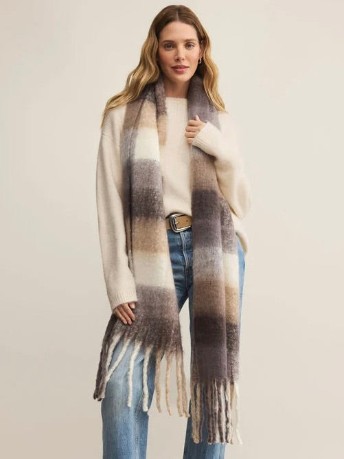 Love the quality of this scarf. Soft and luxurious feel. Muted colors elevate the scarf.