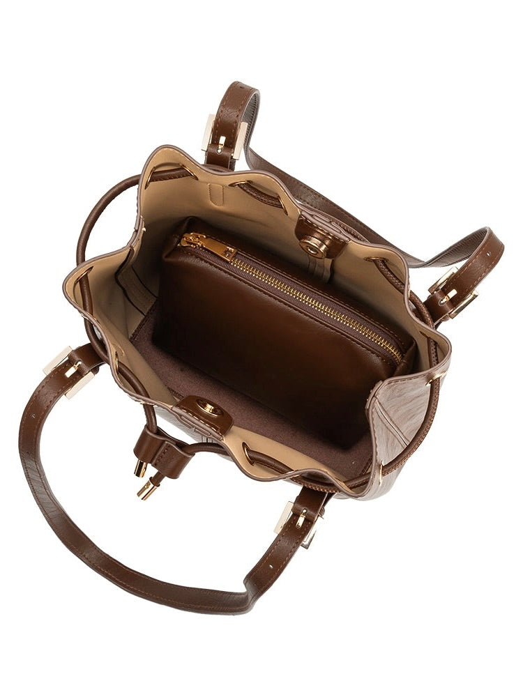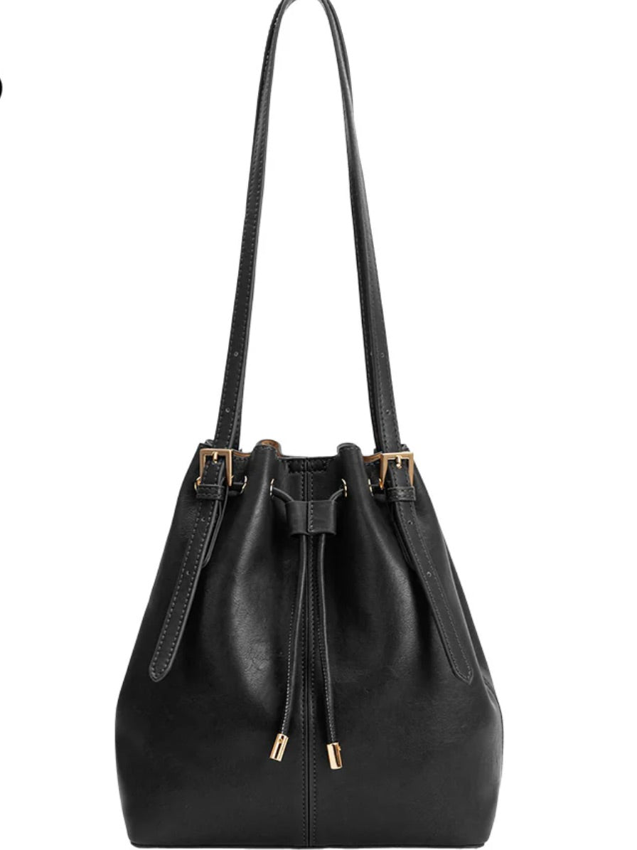 Sleek, structured, and sustainably made. The Sally shoulder bag features a roomy interior, adjustable straps, and a removable zip pouch to keep you organized. Finished with gold-tone details and a soft drawstring detail with a magnetic closure.
