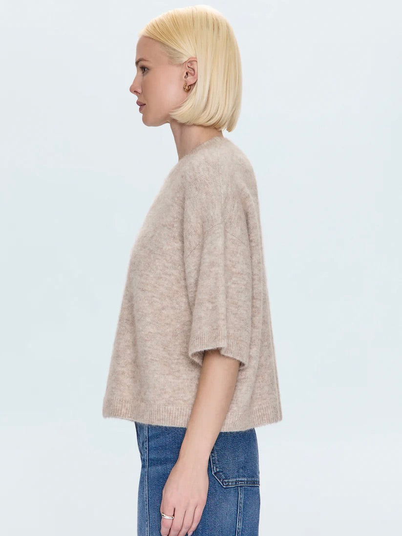 Your perfect sweater for every season. Shiloh delivers timeless crewneck styling in a short sleeve silhouette that transitions effortlessly from spring to fall layering. The relaxed fit feels comfortable and considered while the classic proportions ensure it works with everything in your closet. Crafted from premium knit that's substantial enough to stand alone yet perfect for layering. Oatmeal brings warm, neutral sophistication that anchors any look with understated elegance.