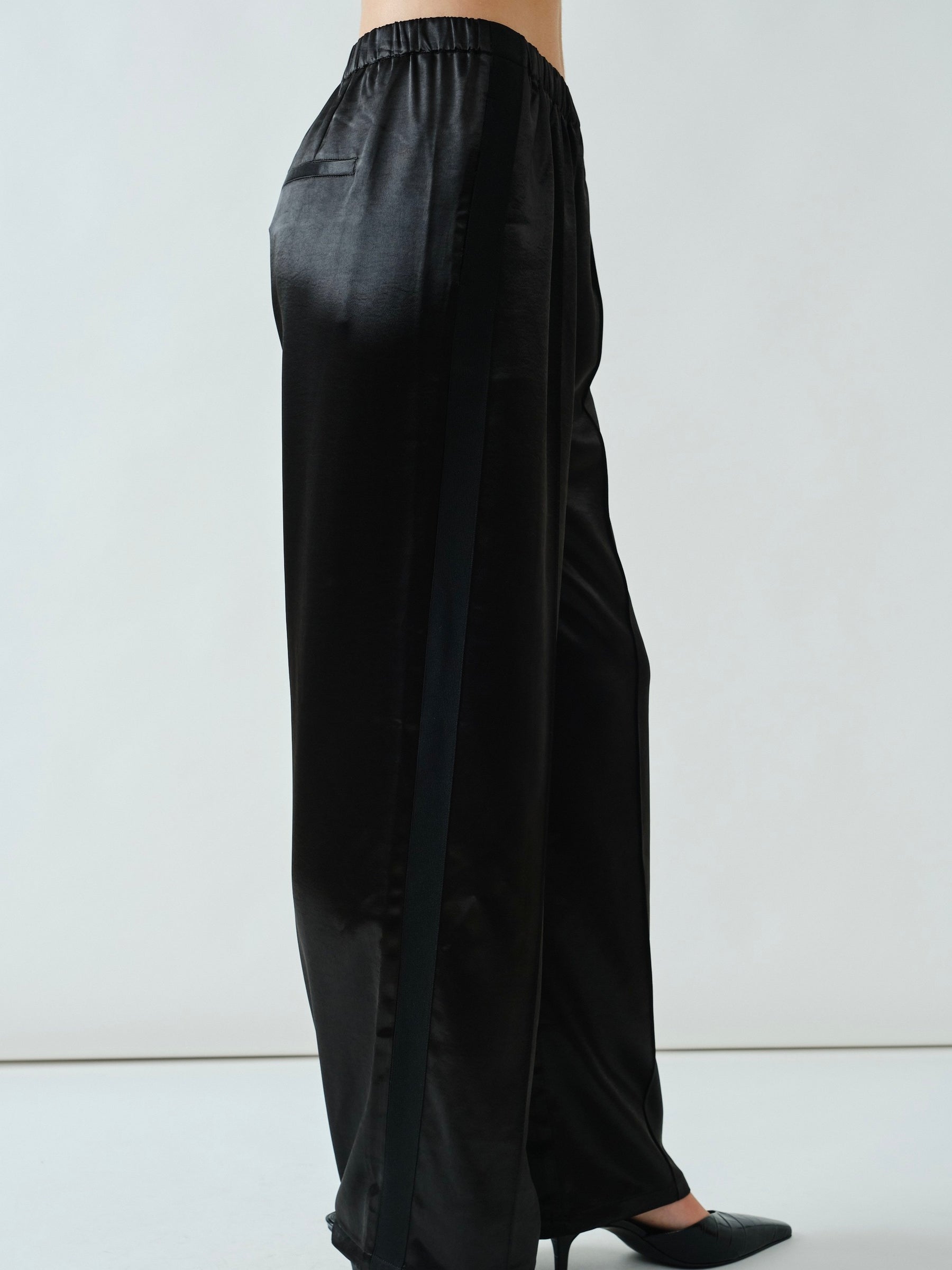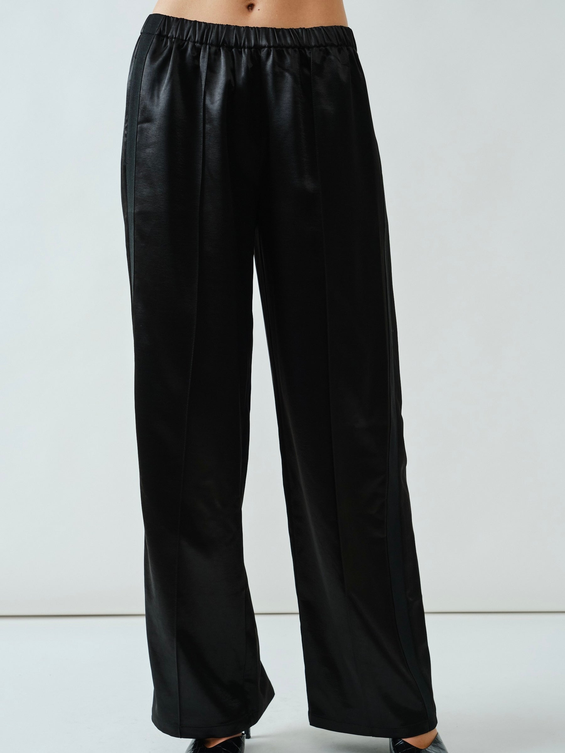 The Textured Heavyweight Satin Pants combine comfort and polish in one effortless piece. With an elastic waist and relaxed straight-leg silhouette, they’re easy to wear while the satin texture adds a touch of luxe. Perfect for pairing with a blouse or sweater for a chic, elevated look.