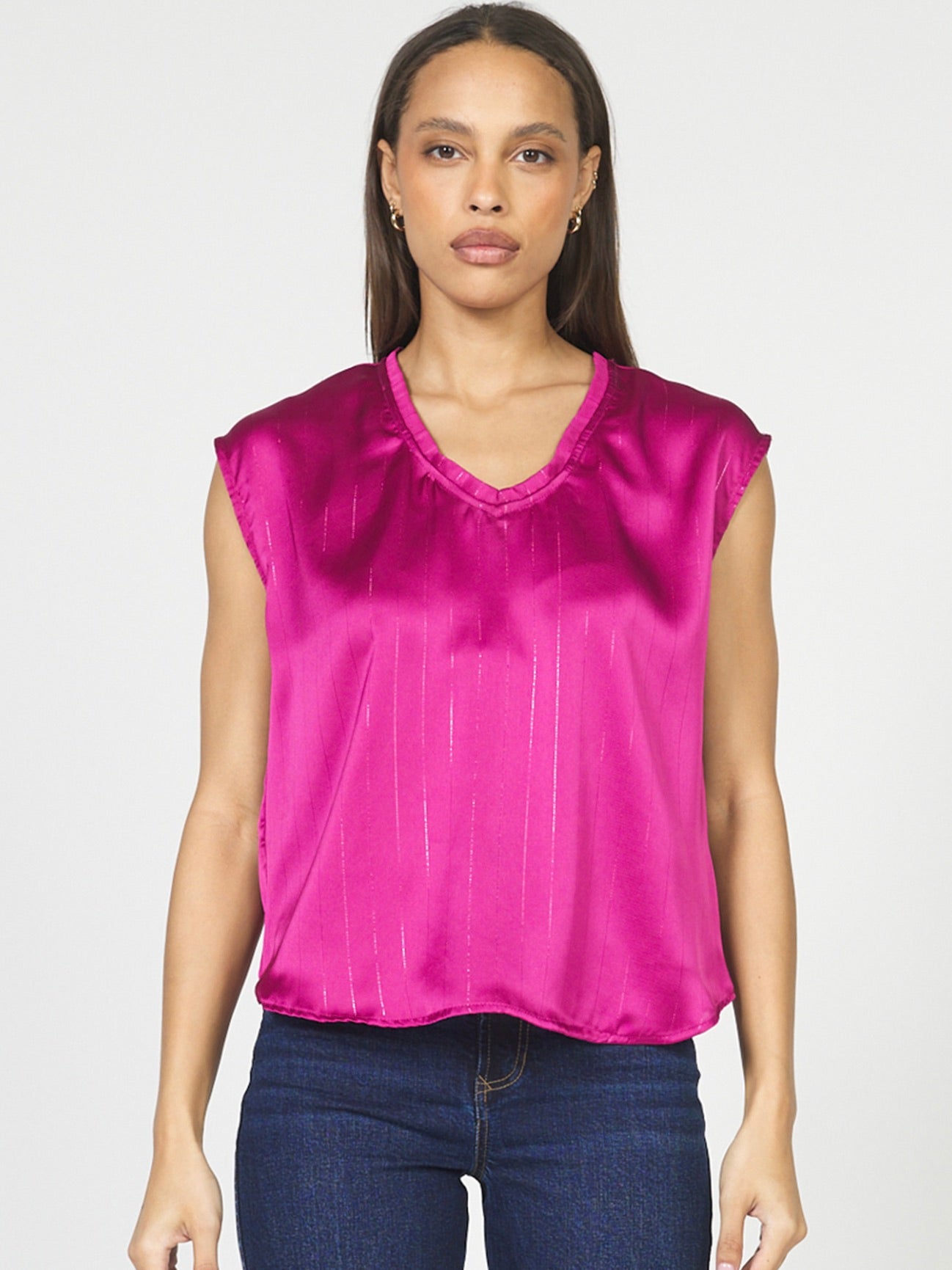 The Yanis Top is smooth, sleek, and effortlessly chic. Its satin finish, V-neckline, and classic fit make it perfect for dressing up or adding a polished touch to any outfit. Pair it with tailored pants or a skirt for a sophisticated day-to-night look, or layer under a blazer for an easy, polished ensemble. The silky satin fabric adds just the right amount of shine to elevate any outfit.