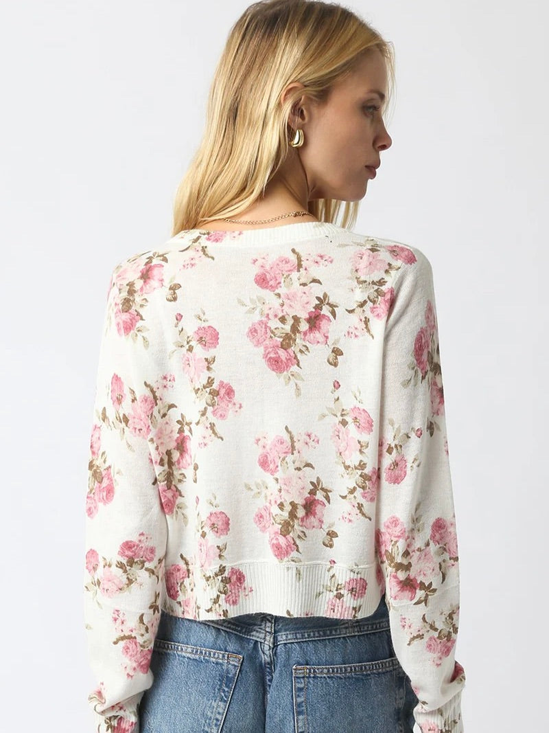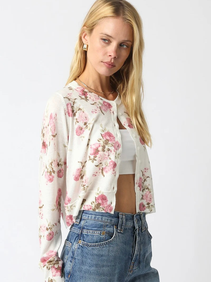 The Nola Floral Cardigan brings a cozy, vintage-inspired vibe to your wardrobe. This cropped cardigan features a soft floral knit for a charming touch. Finished with a ribbed hem, it pairs perfectly with high-rise denim or layered over a dress for an easy, put-together look.