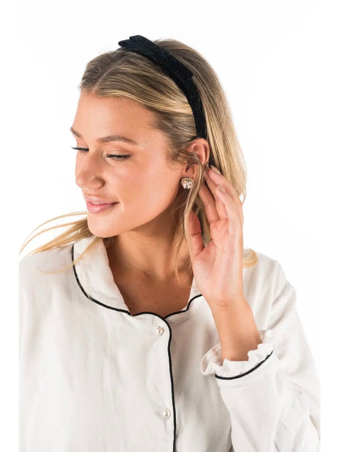 The Sparkle Velvet Bow Headband is the ultimate fusion of rich texture and radiant sparkle. Crafted from plush velvet and adorned with dazzling glitter, this headband offers a chic way to add a touch of glamour to your everyday look. The oversized bow design not only brings a playful touch but also elevates any hairstyle with a refined, luxe finish. Perfect for festive occasions, casual daywear, or whenever you want to make your look a little more special. For a head-turning look that combines comfort and sparkle effortlessly.