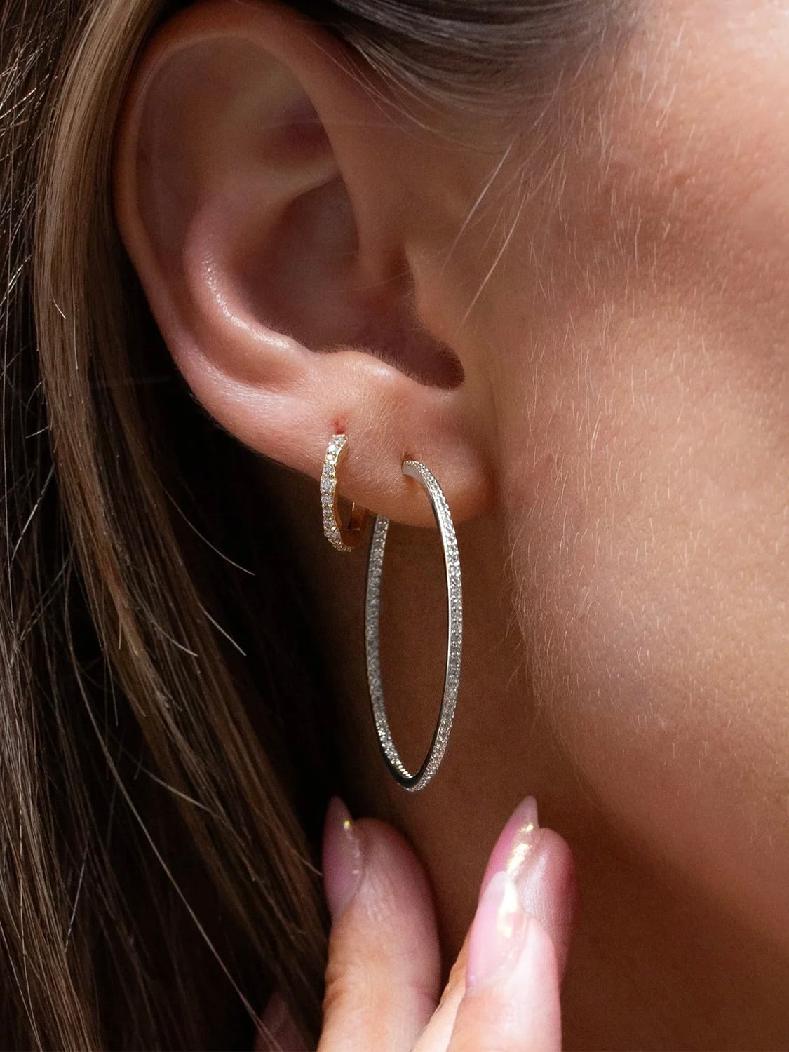 The perfect everyday hoop! Our minimal Cz hoop adds the perfect touch of glam to any outfit.