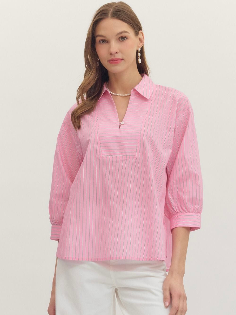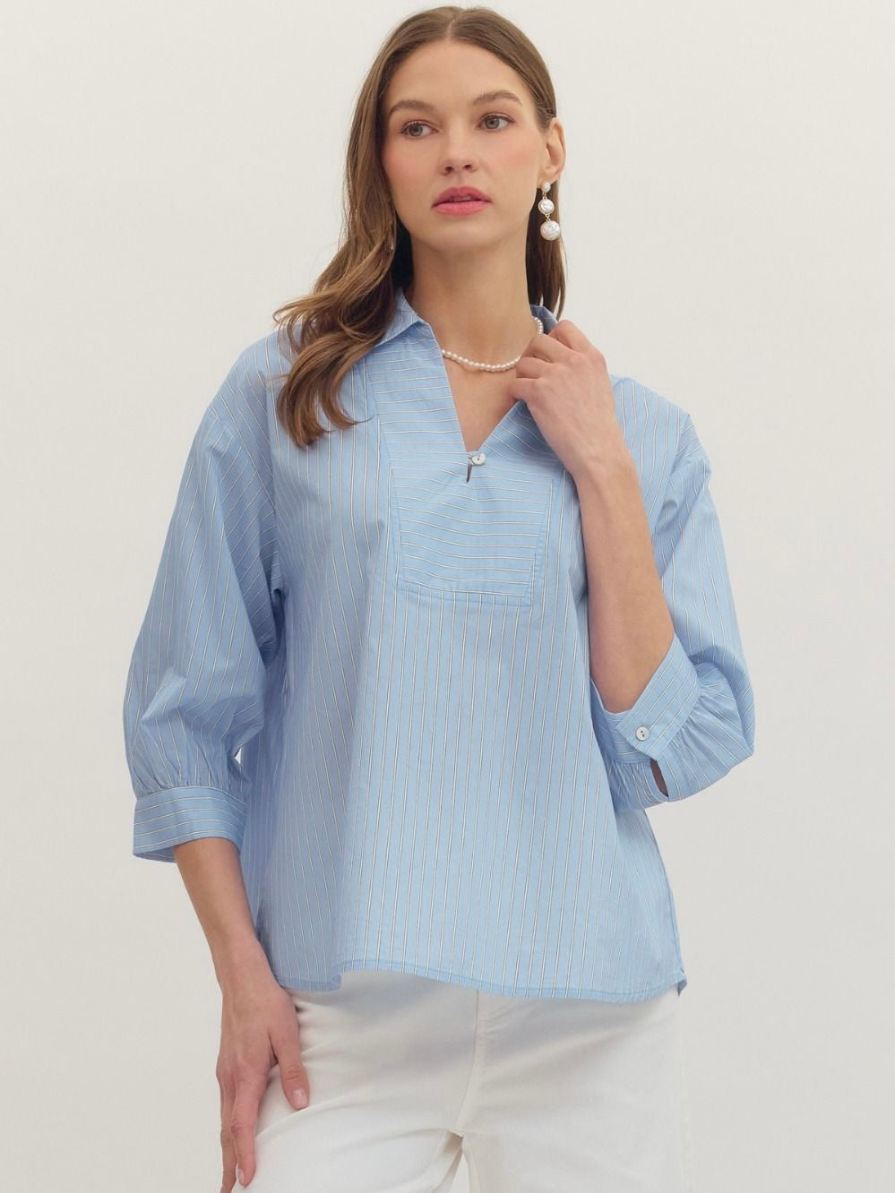The Barclay Top is an easy essential you’ll wear on repeat. With its collared neckline and 1/2 puff sleeves, it keeps things classic with a playful twist. The lightweight cotton feels breezy and comfortable all day. Pair it with your favorite bottoms for an instantly polished, fun look.