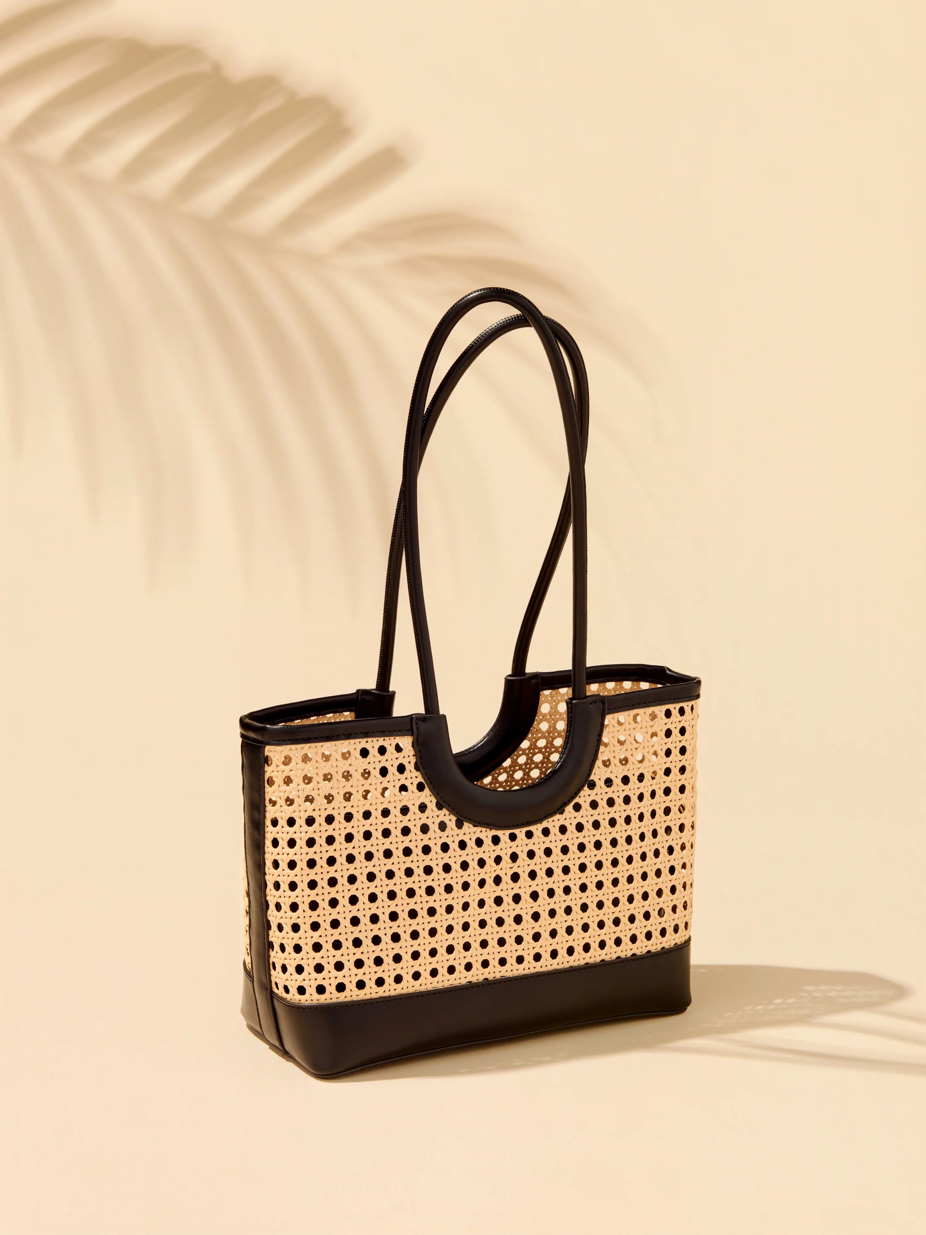 The Lyra Mini Tote is a fresh and breezy update to your everyday bag rotation. Designed with a woven cane body and sleek vegan leather trim, it’s both lightweight and structured for effortless style. Double shoulder straps make for easy carrying, while the magnetic snap closure keeps your essentials secure. Bonus: it comes with a removable zip pouch to keep your small items organized and close at hand.