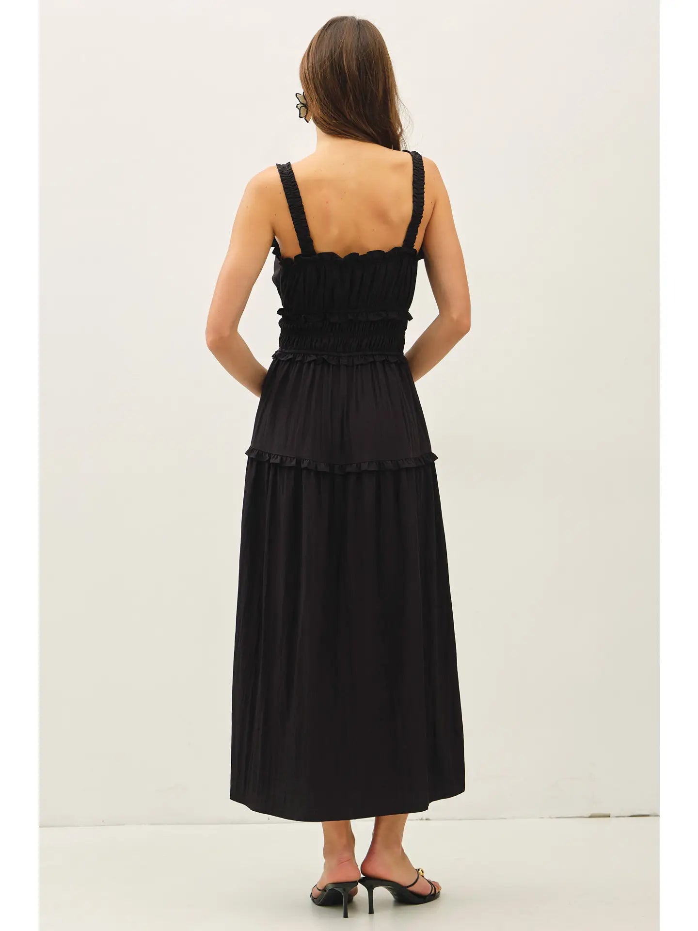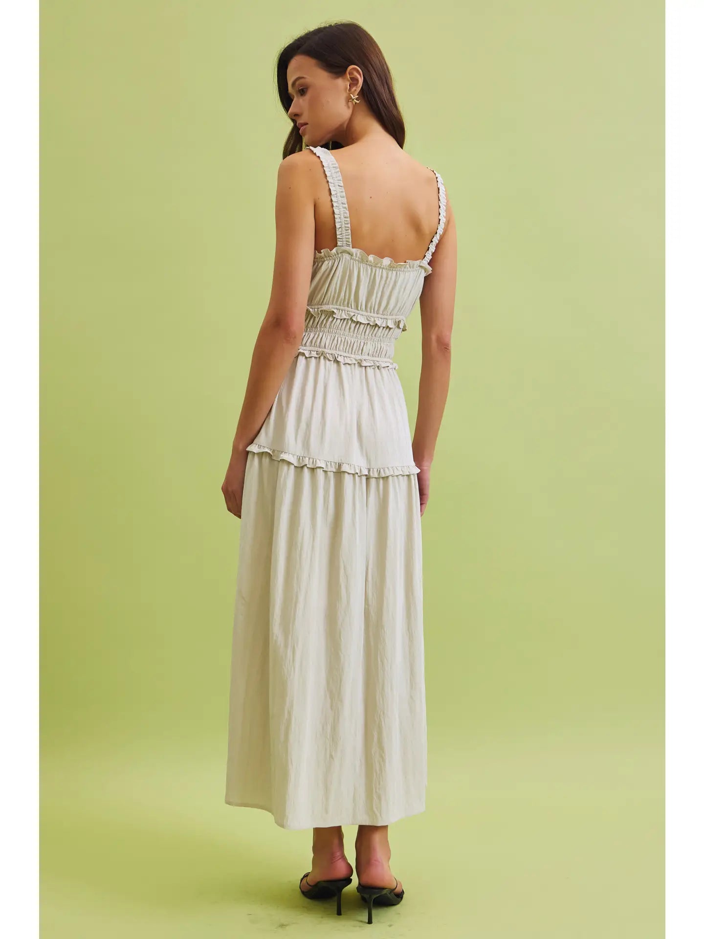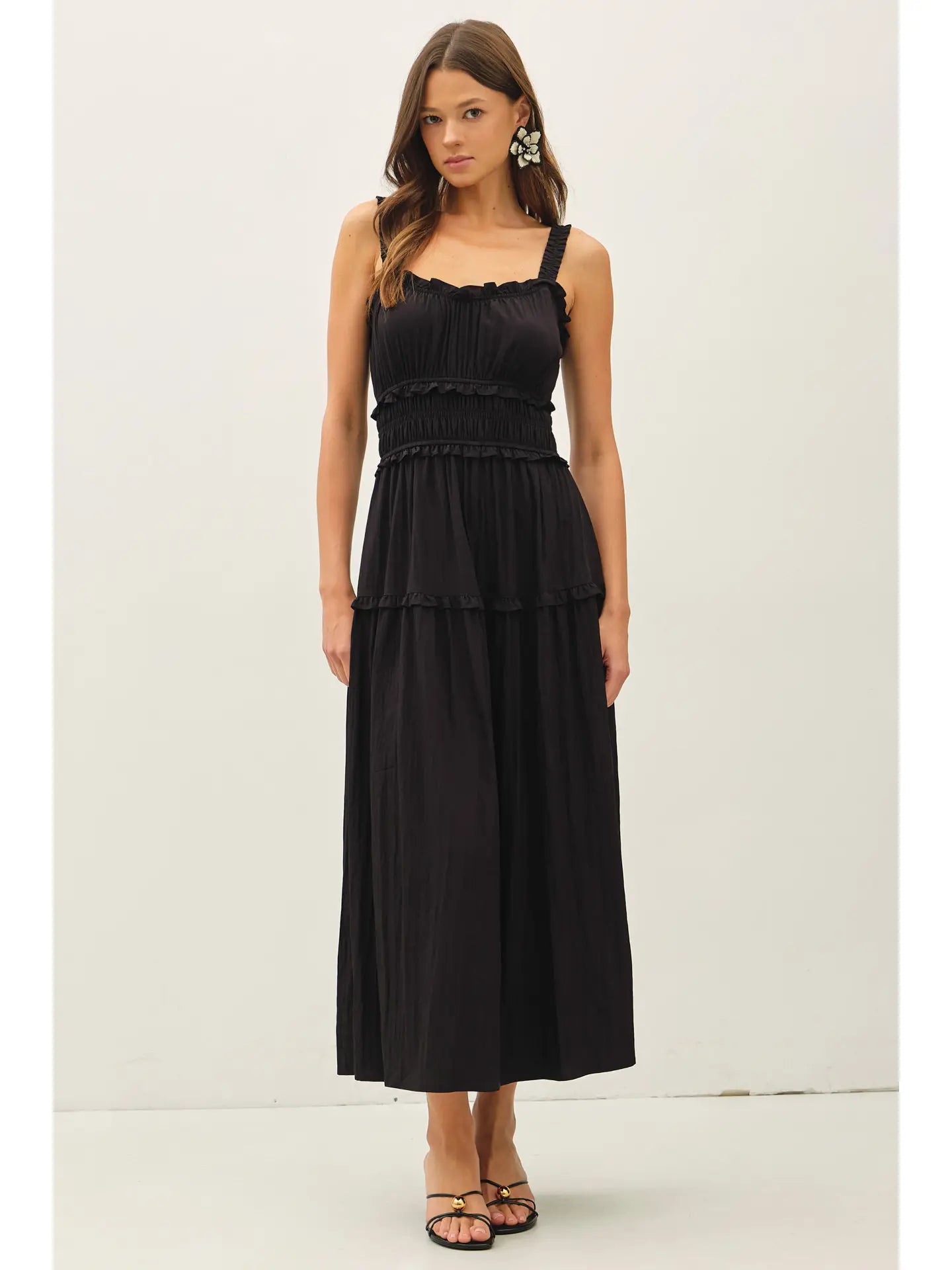 The Brady Midi Dress is your new shortcut to looking instantly polished without any of the effort. Made from crisp cotton that holds its shape, it features elastic straps and a stretchy waist for a fit that actually lets you move. With its playful ruffled details and breezy midi length, it’s the kind of "throw-on-and-go" piece that works just as well at a farmers' market as it does at a summer wedding.