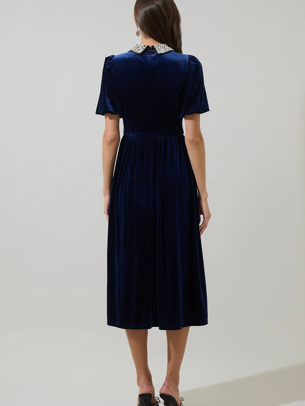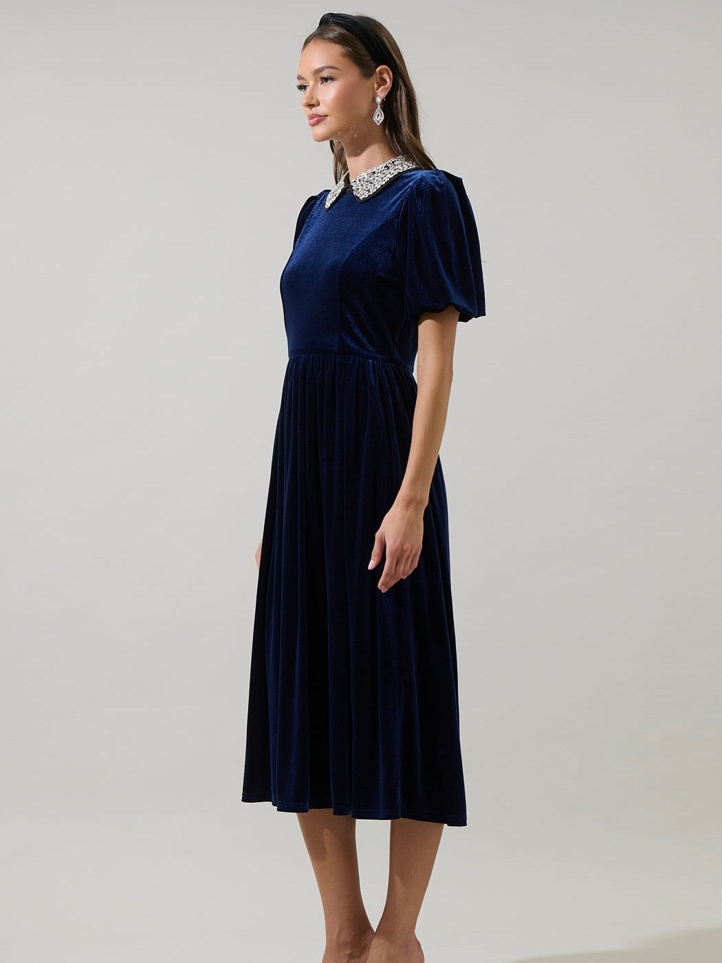 Francie Rhinestone Velvet Midi Dress – Vintage Charm