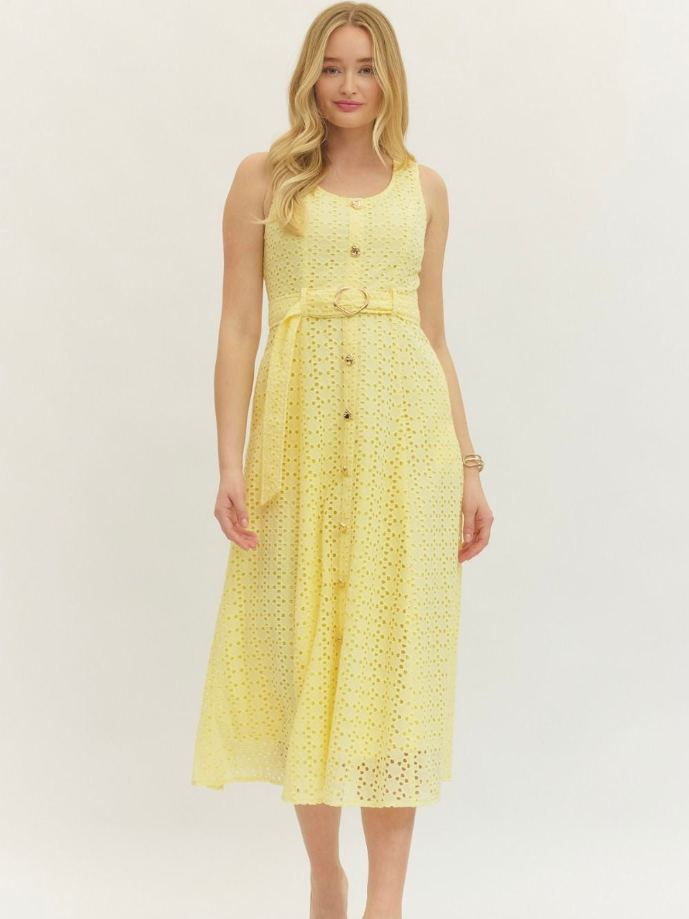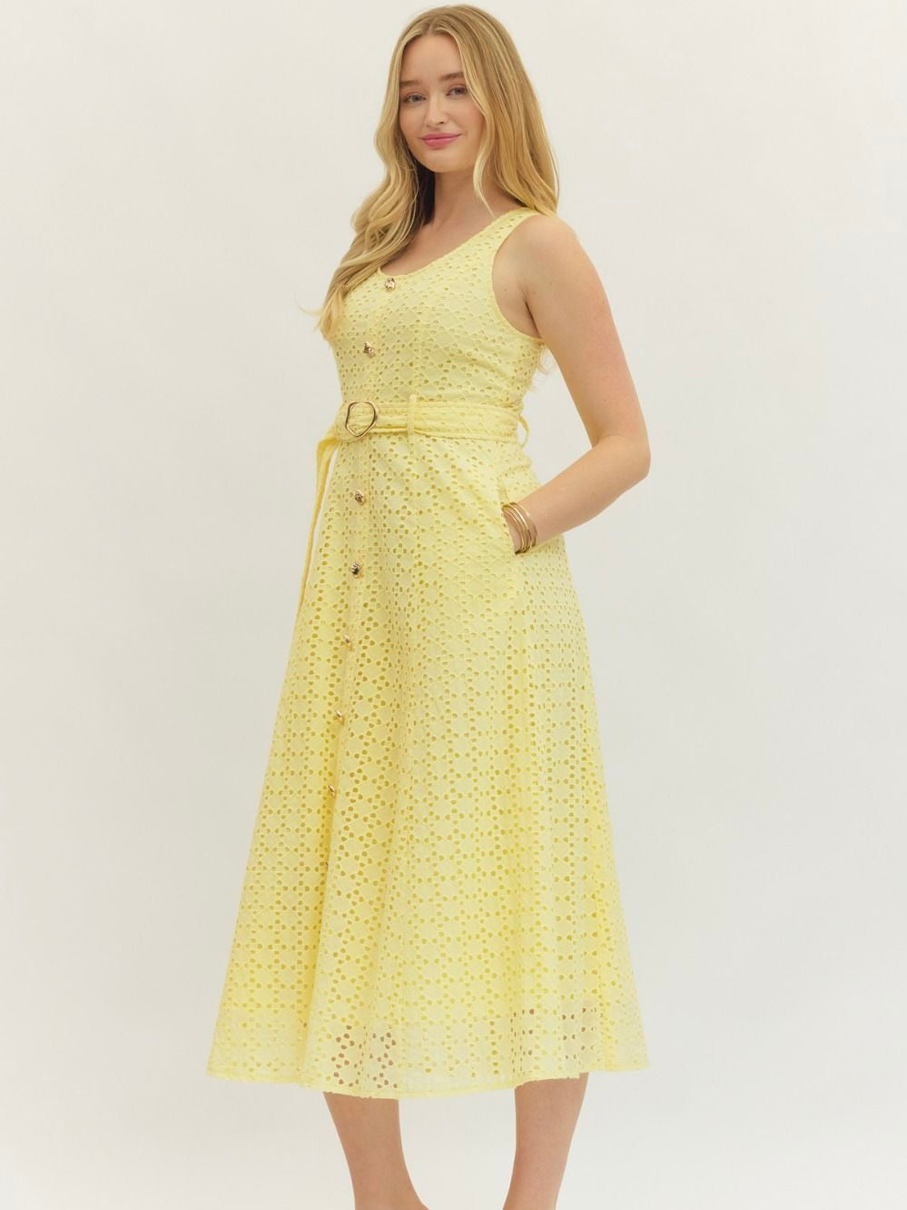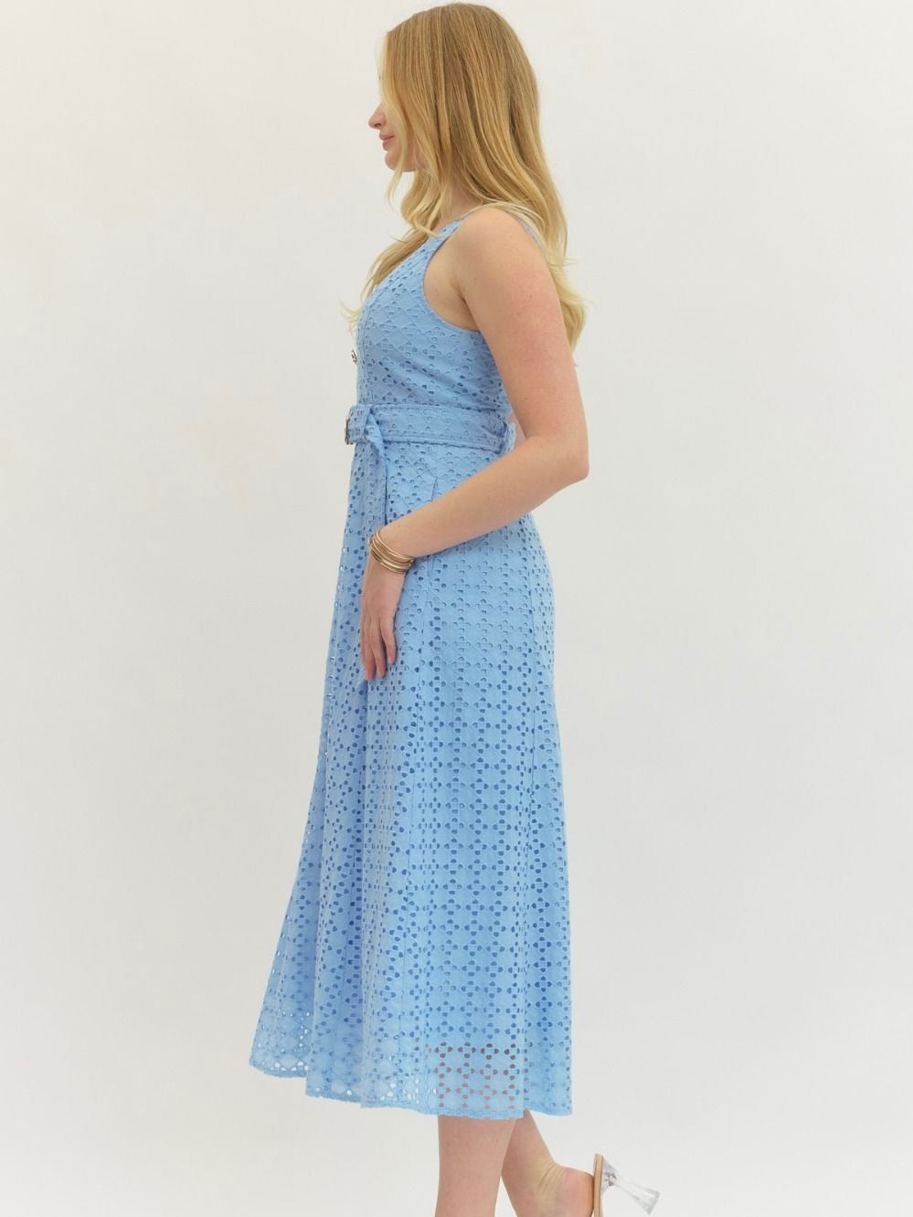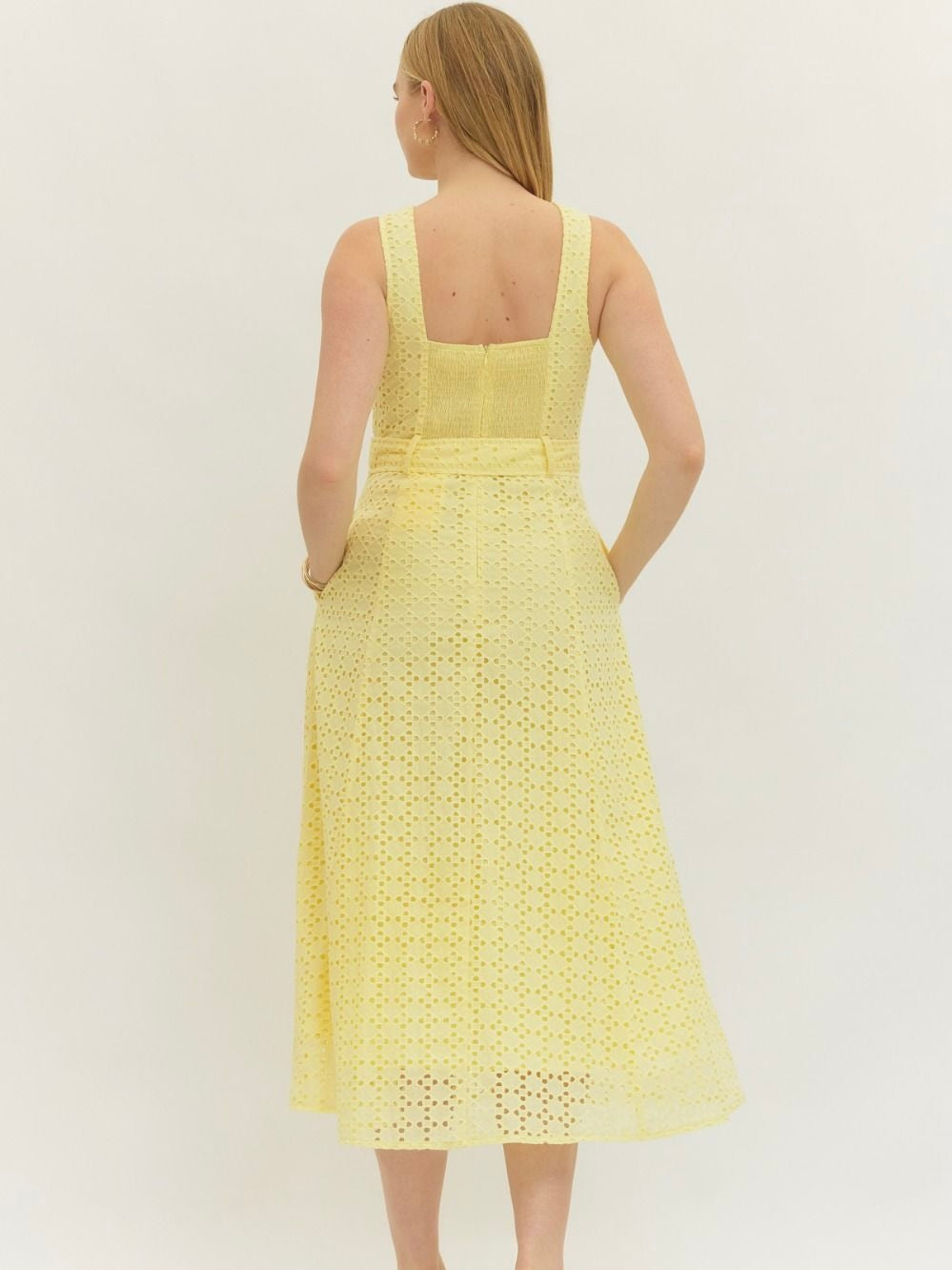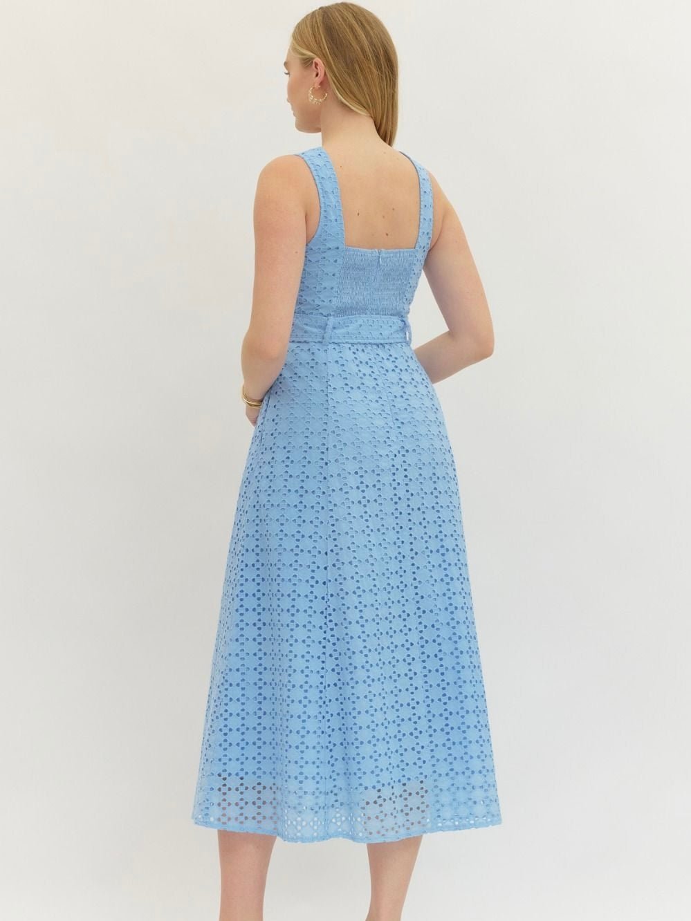 The Gibralter Dress is all about flirty, easygoing charm. Eyelet lace adds a fun, textured detail, while the waist belt and back smocking give it a flattering, playful shape. Perfect for weekend strolls, casual brunches, or anything in between.