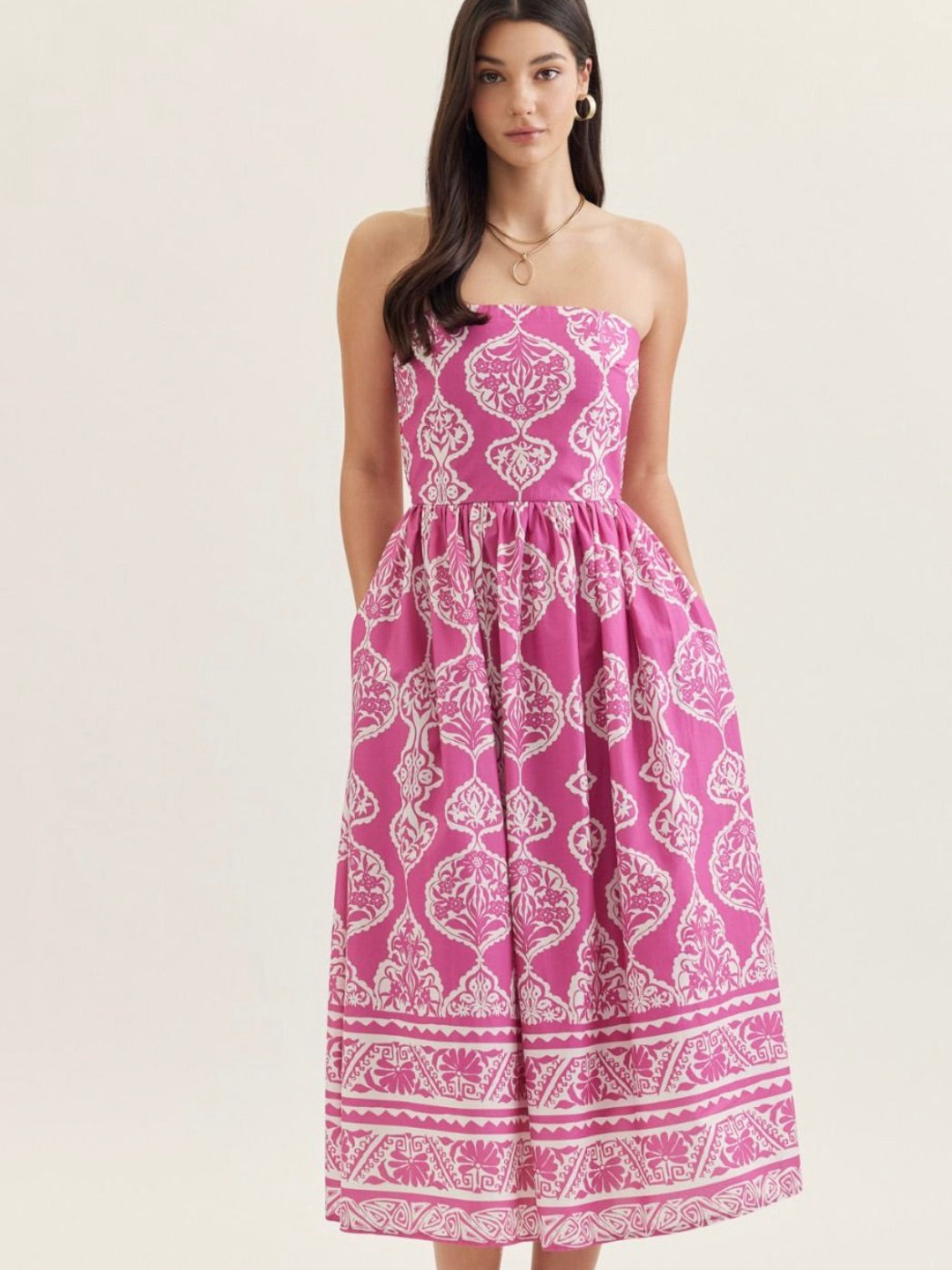 The Jess Dress keeps things clean and classic with a modern edge. Designed with a strapless, straight neckline and an easy midi length, it creates a sleek, streamlined silhouette. It’s a polished pick that feels equal parts effortless and put-together. Just add your favorite sandals or heels and you’re instantly ready for whatever’s on the calendar.