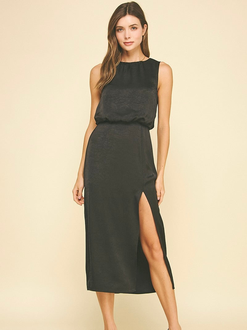 The Silky Side Slit Midi Dress is effortlessly chic with a touch of flirtiness. Its flattering shirring and elastic waist create a polished silhouette, while the side slit adds playful movement. Perfect for date nights, holiday gatherings, or any occasion where you want to feel effortlessly stylish.