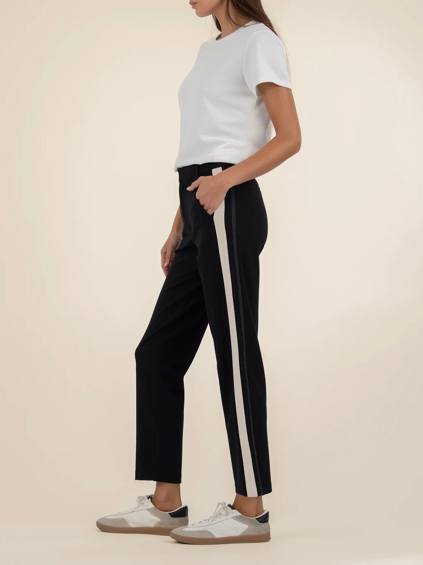 Elevate your everyday look with these high-rise straight leg pants in classic black. Designed with a subtle side inset detail and made from very stretchy fabric, they offer a flattering fit and all-day comfort—perfect for work, weekends, and everything in between.
