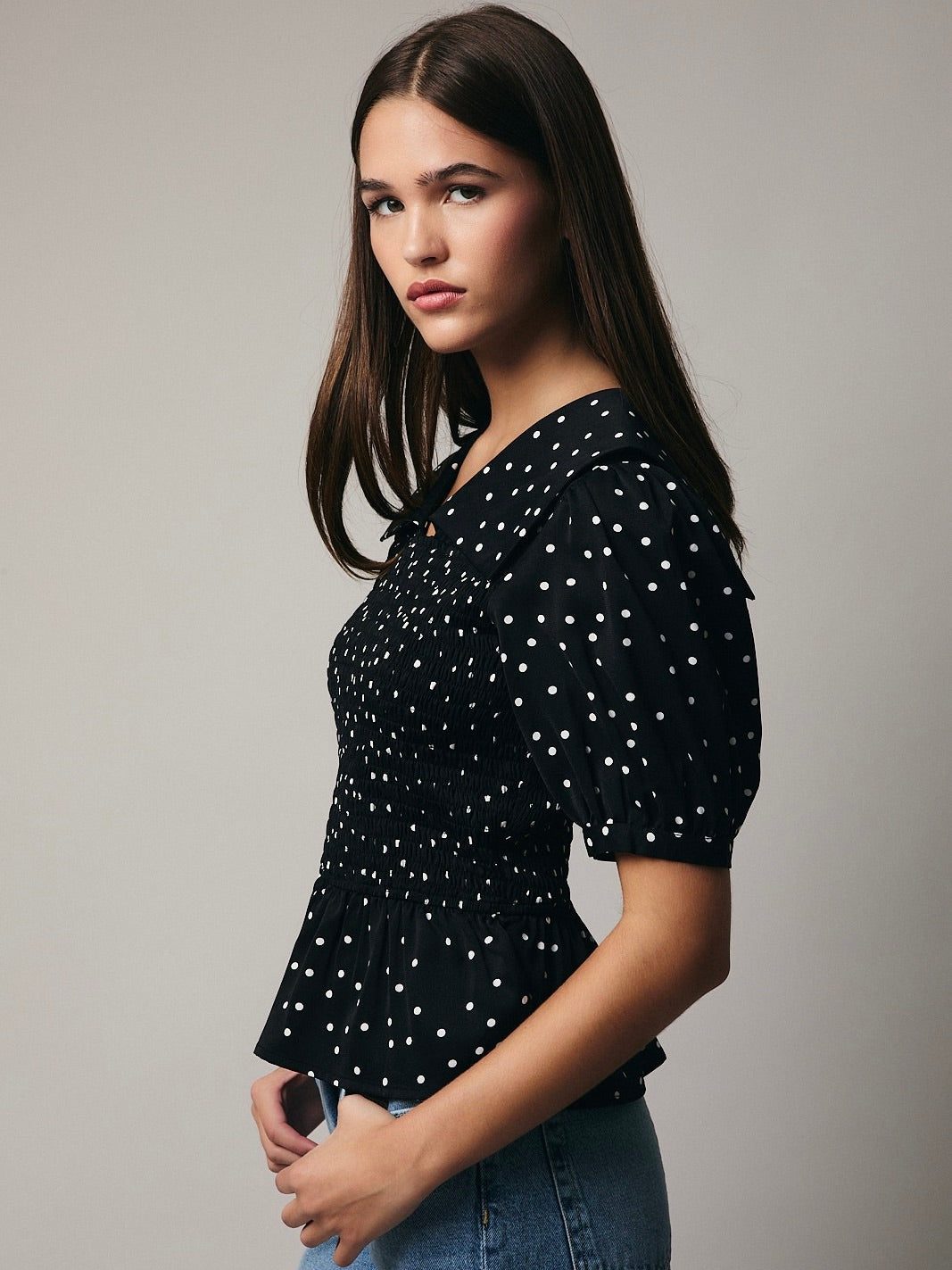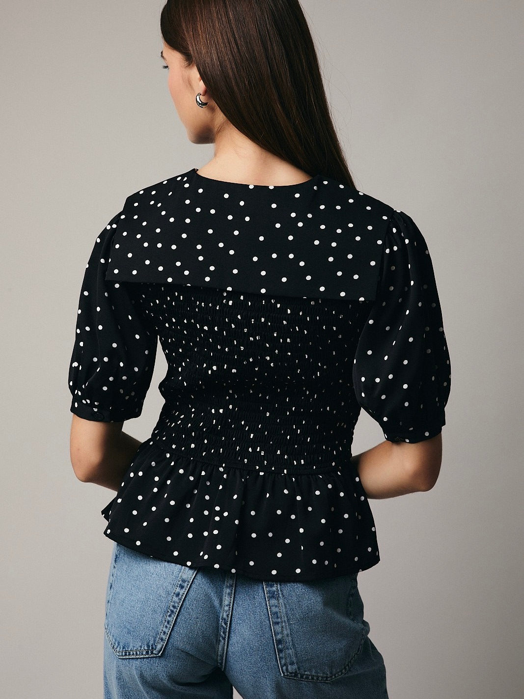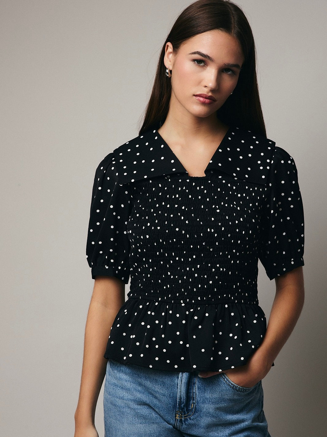 The Grayson Peplum Top brings sweet charm with a flattering twist. Its smocked bodice and peplum hem create a flirty, feminine shape, while the puff sleeves and V neckline keep things effortlessly pretty. A feel-good favorite for any day of the week.