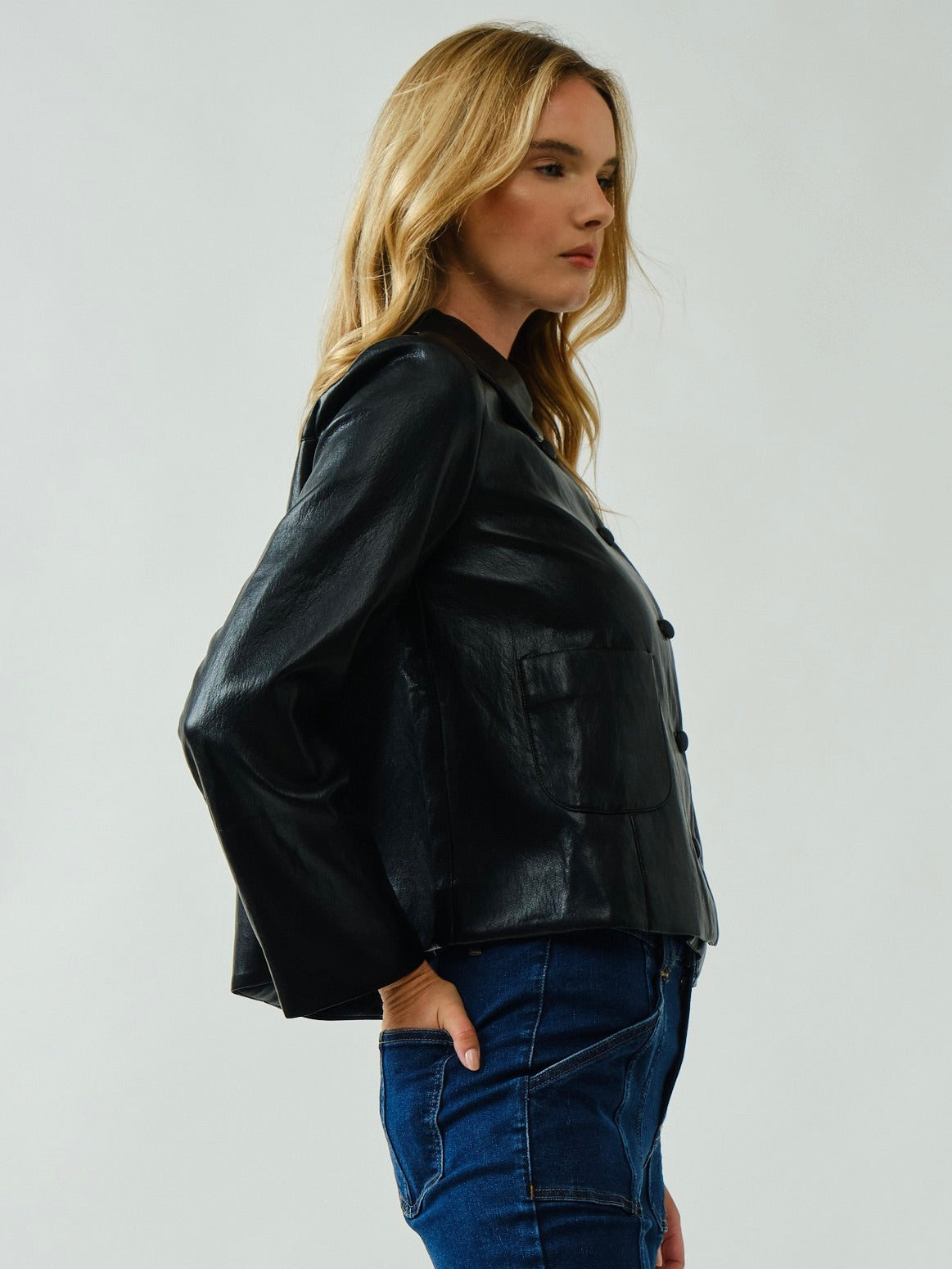 This Peterpan Collar Jacket brings a playful twist to your wardrobe. The classic collar and cropped fit make it perfect for layering over tees or dresses, while front pockets and a button-down front keep it effortlessly chic. Long sleeves make it cozy enough for cooler days without weighing you down.