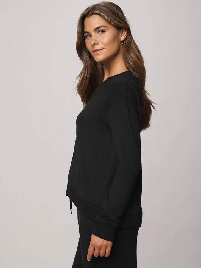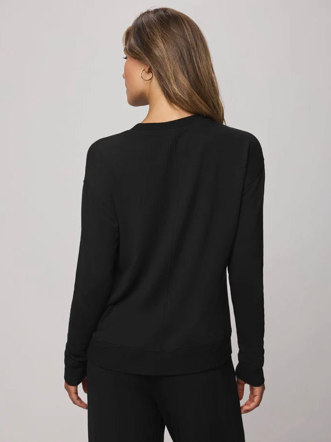 This incredibly soft pullover is crafted with LENZING™ ECOVERO™ fibers, which are derived from certified renewable wood sources, plus a touch of stretch for a perfect fit. Designed with a relaxed silhouette, it features luxe velvet trim along the front center seam for a subtle, polished touch. Finished with ribbed cuffs and hem, this style brings cozy sophistication to your off-duty wardrobe.