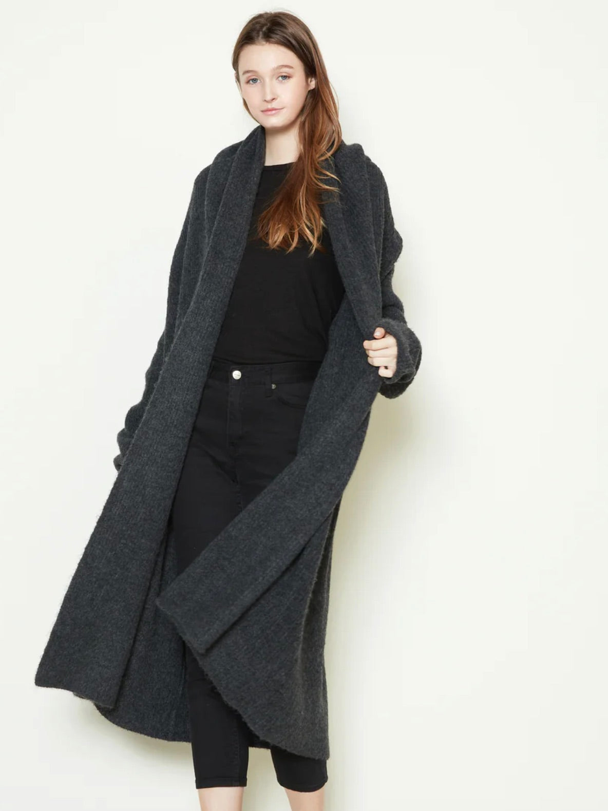 Wrap yourself in effortless comfort with this Wide Shawl Collared Cardigan. Designed with a soft, drapey silhouette and an open-front style, it layers beautifully over any outfit. The wide shawl collar and midi length make it a cozy go-to for lounging or layering on chilly days.