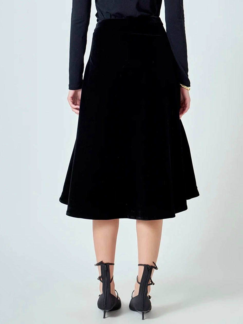 Introducing our Justine Skirt, a piece that effortlessly blends luxury and versatility. Crafted from plush velvet fabric, this skirt offers a rich texture and a soft, elegant feel that moves beautifully with every step. The flattering midi length exudes sophistication, making it perfect for everything from casual daytime outings to evening occasions. Designed with a convenient side zipper for easy wear and a relaxed fit for all-day comfort, it’s as practical as it is stylish. Whether dressed up with heels and a blouse or styled casually with boots and a knit, this skirt is a wardrobe staple that adds instant refinement to any look.