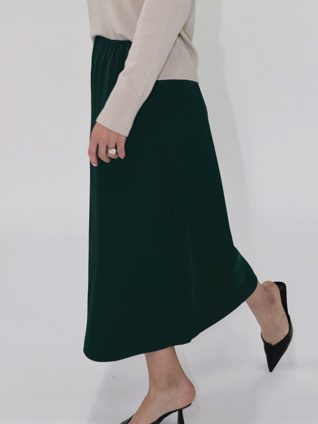 The Liya Satin Skirt is effortlessly chic with a luxe, flowing feel. Its elastic waist ensures comfort and easy wear, while the midi length makes it perfect for pairing with tees, blouses, or sweaters for a polished, versatile look.