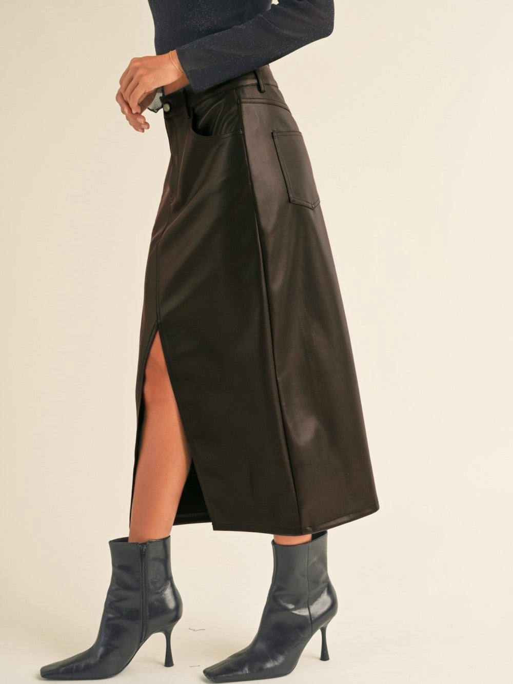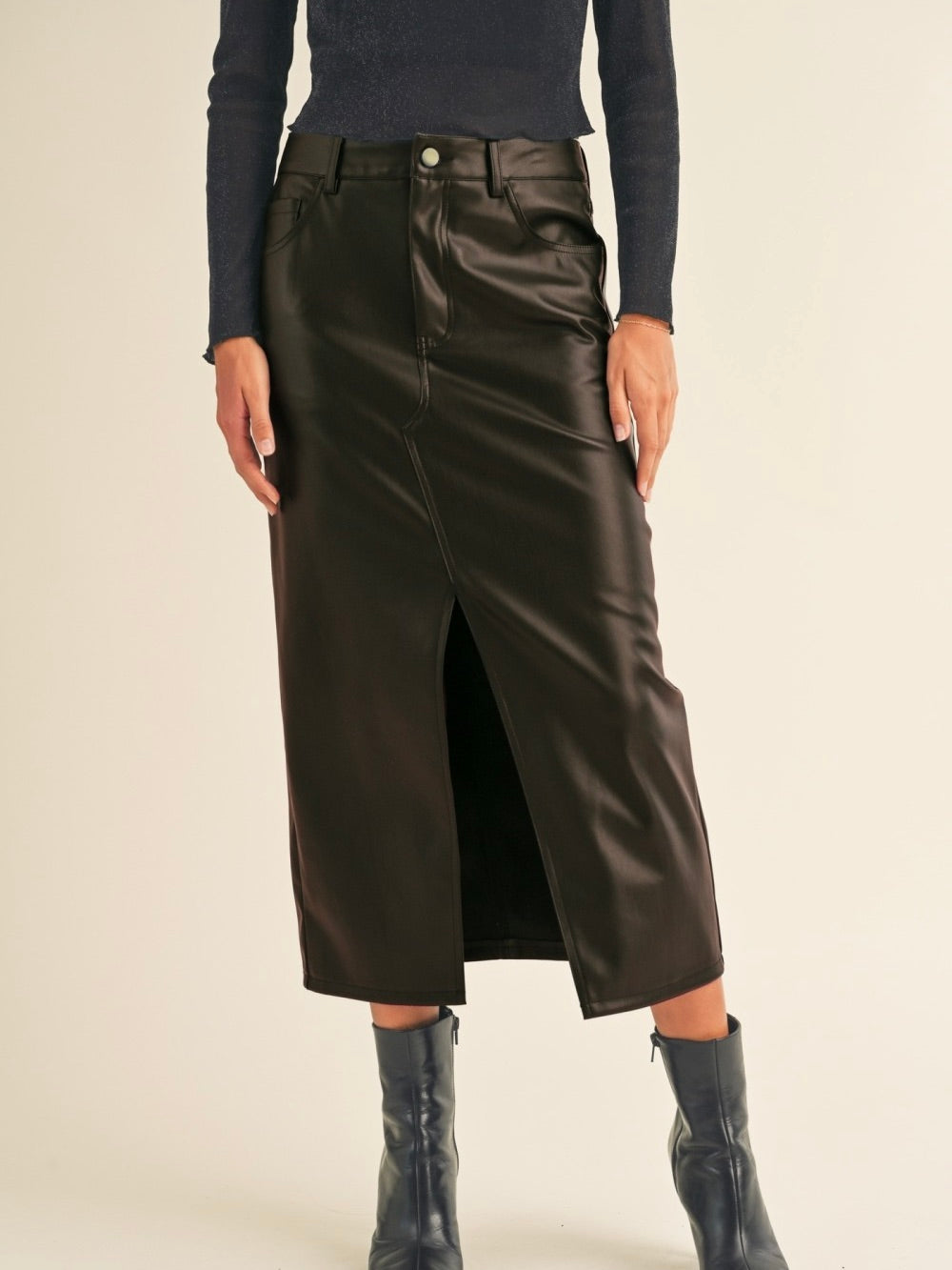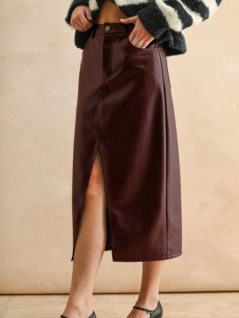 Pleather Slit Front Skirt – Vintage Charm