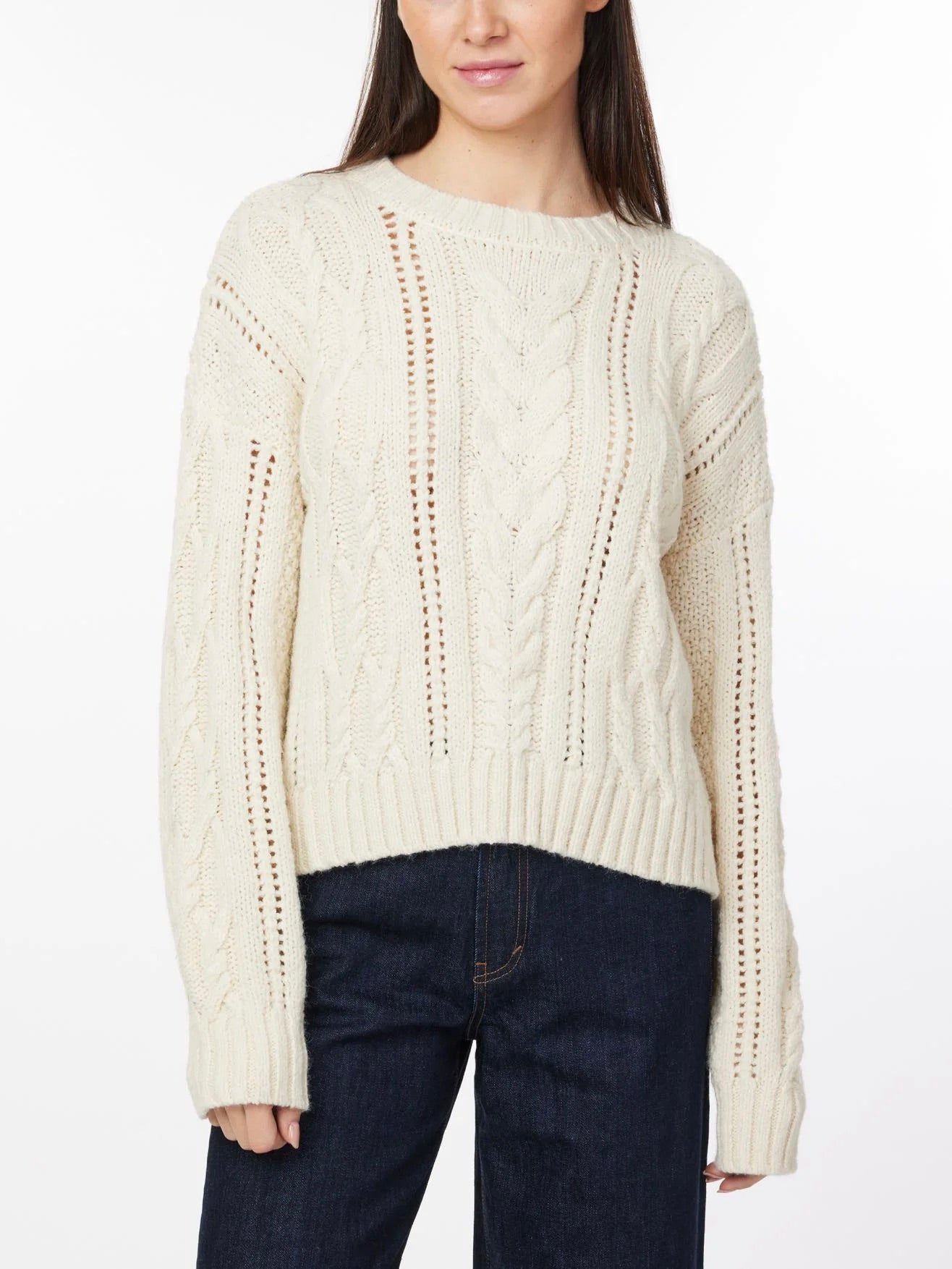 The Cable Pointelle Sweater is your new go-to for cozy days with a hint of texture. Soft, easygoing, and effortlessly stylish, it pairs perfectly with jeans or your favorite skirt for a look that’s as comfy as it is cute. It’s a versatile staple for layering or wearing on its own.