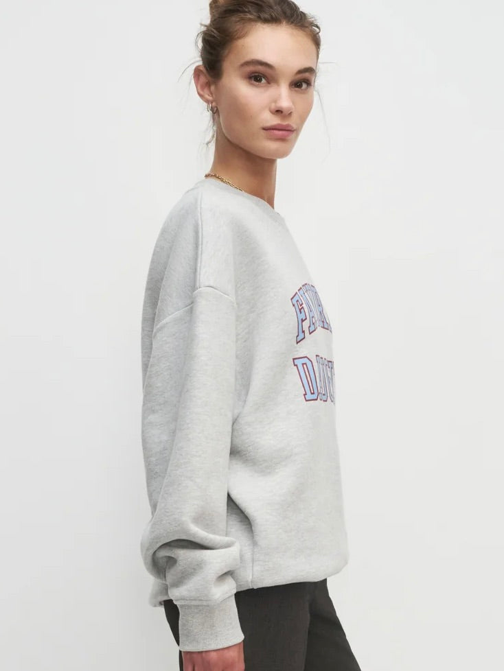 Give it the old college try with our oversized collegiate sweatshirt. With the drop shoulder and relaxed fit, this collegiate classic will go to the head of the class (and your closet).
