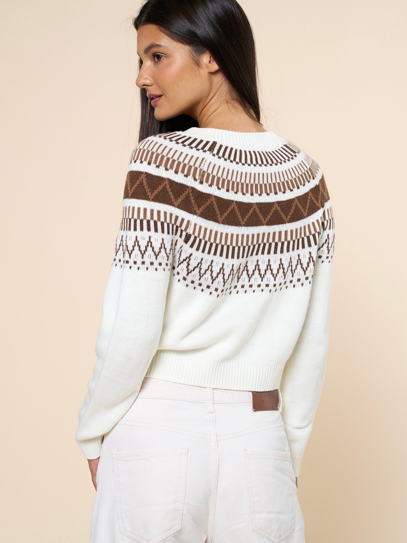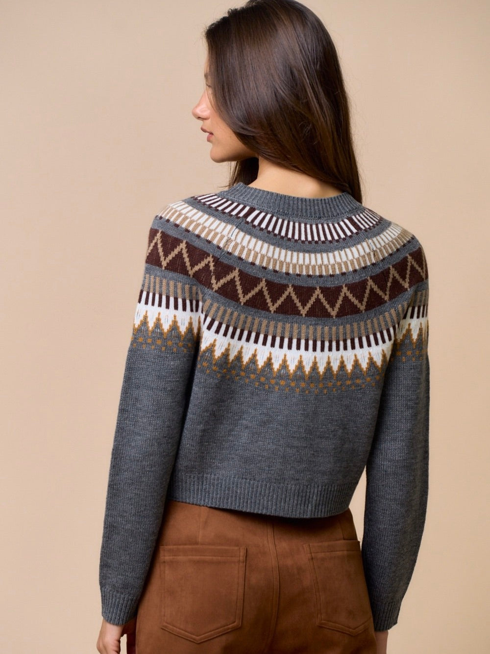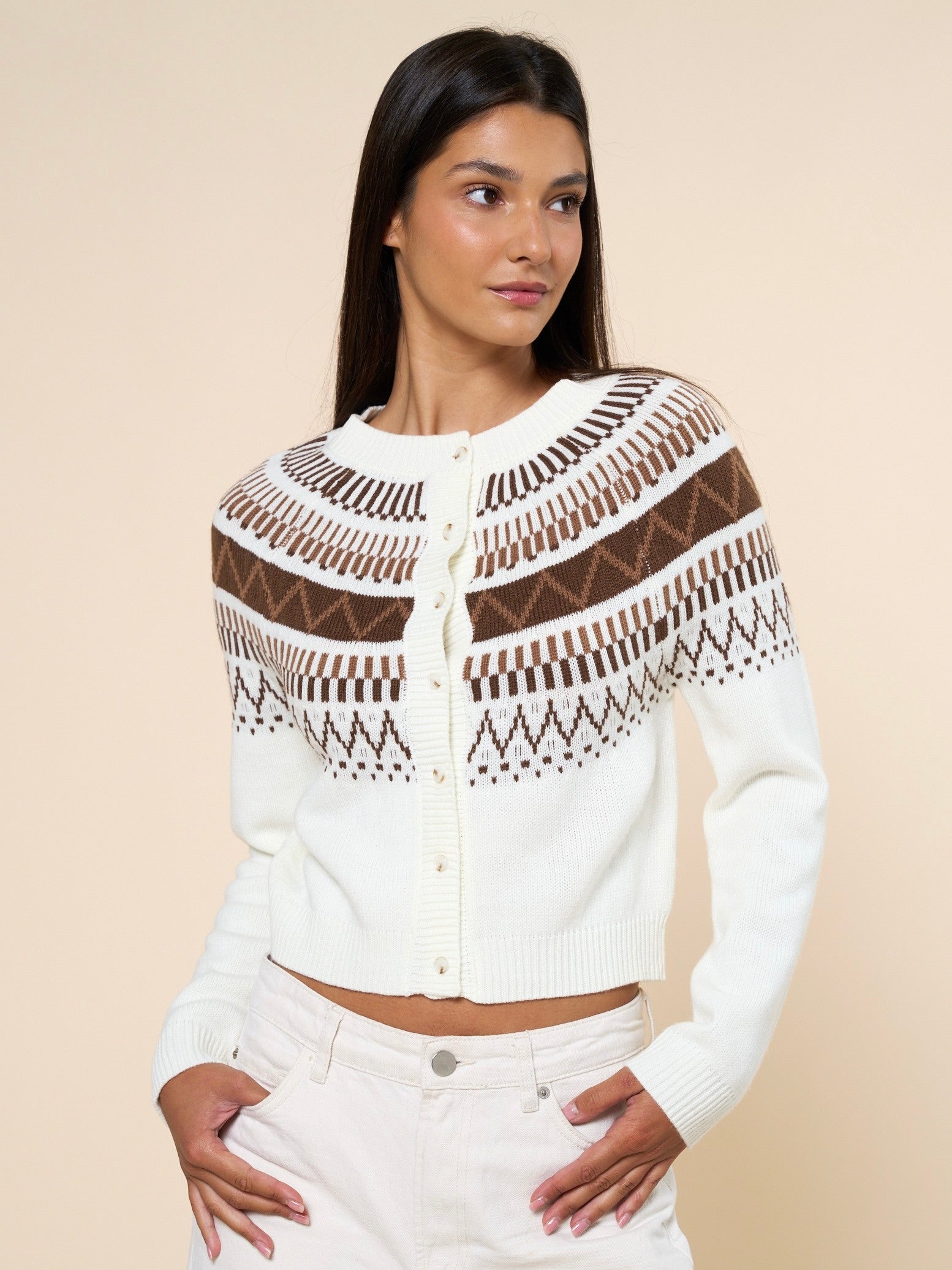 Add personality to your layers with the Fair Isle Highway Cardigan, featuring bold designs and a cozy knit feel. The button-front closure and relaxed fit make it easy to style open or closed, while the all-over pattern brings a playful yet polished touch to any outfit. A standout piece for both comfort and character.