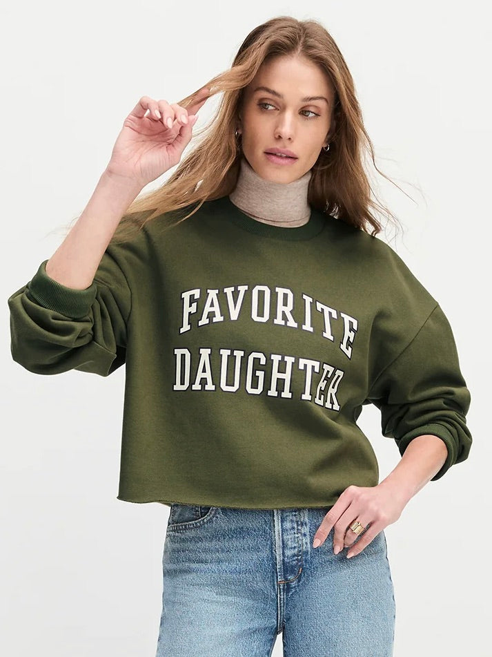 Rep your status loud and proud—this Cropped Collegiate Sweatshirt says it all: Favorite Daughter. With a classic crew neckline, long sleeves, and a perfectly cropped fit, it’s equal parts cozy and cool. Wear it like the trophy child you are (no sibling rivalry required).